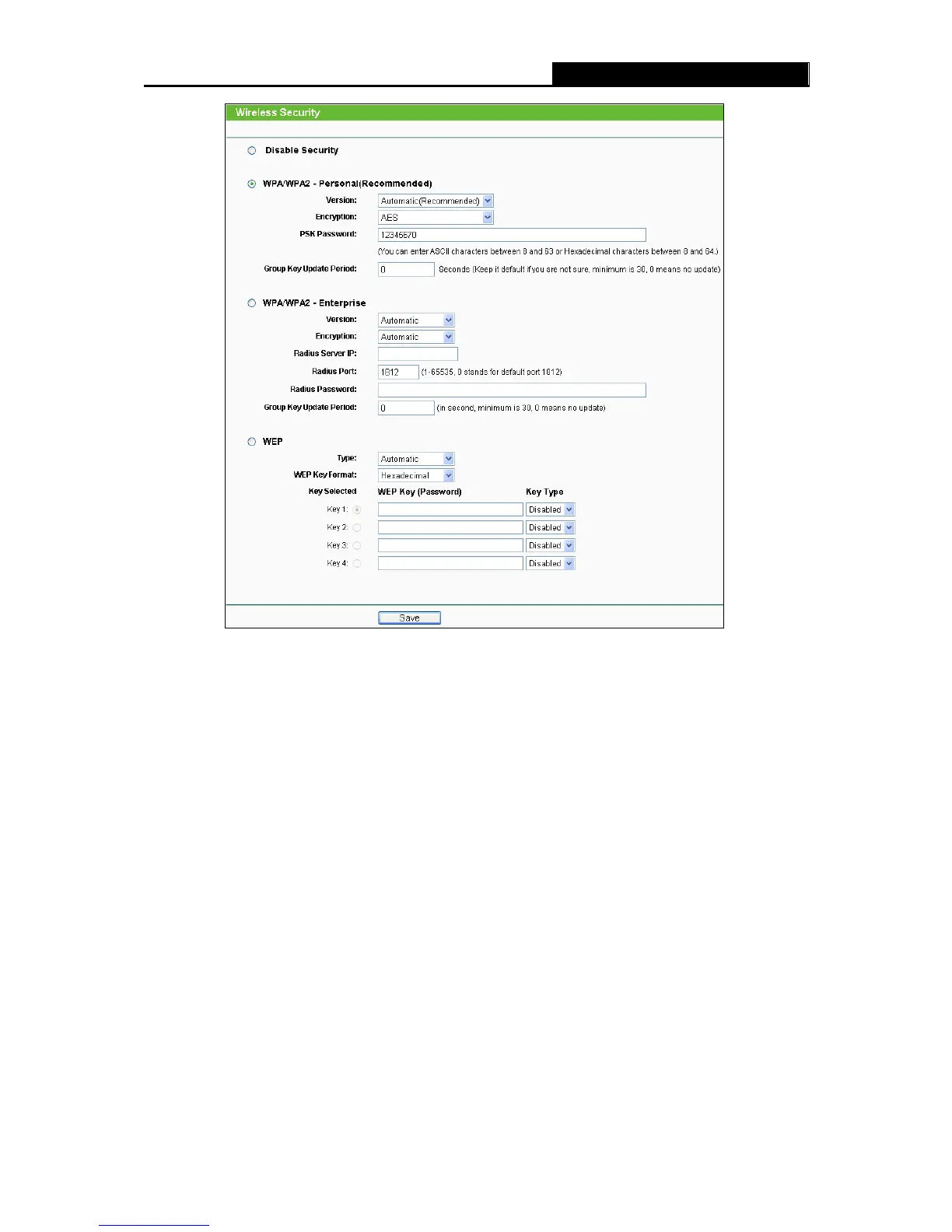 Disable Security - If you do not want to use wireless security, check this radio button. But it’s