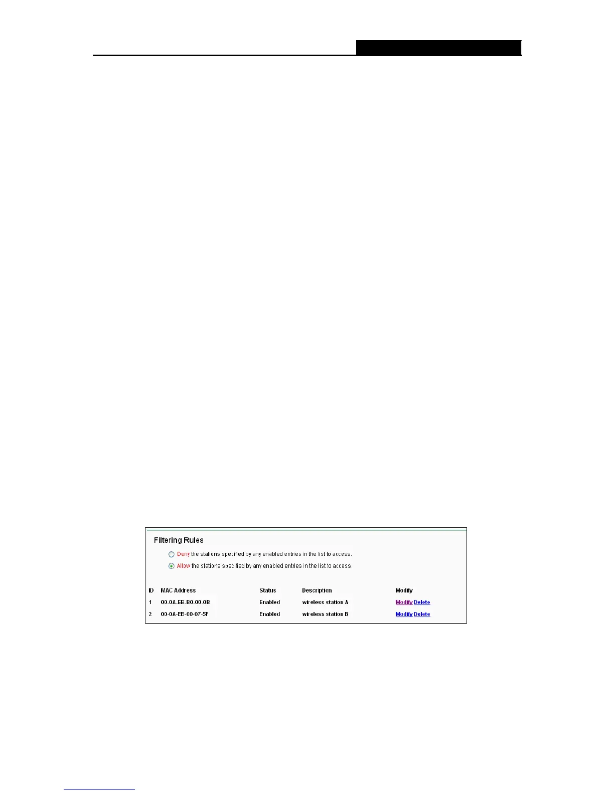 the other wireless stations cannot access the Router, you can configure the Wireless MAC