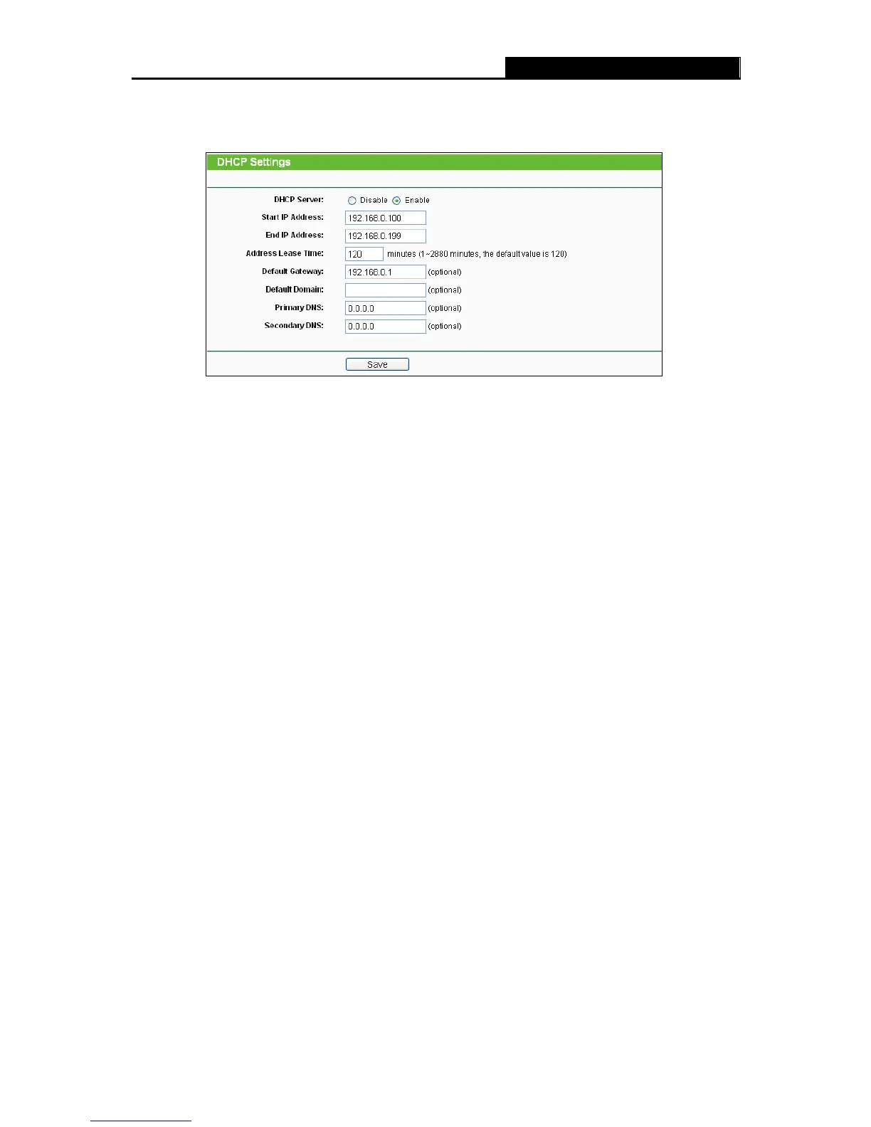DHCP Server - Enable or Disable the DHCP server. If you disable the Server, you must