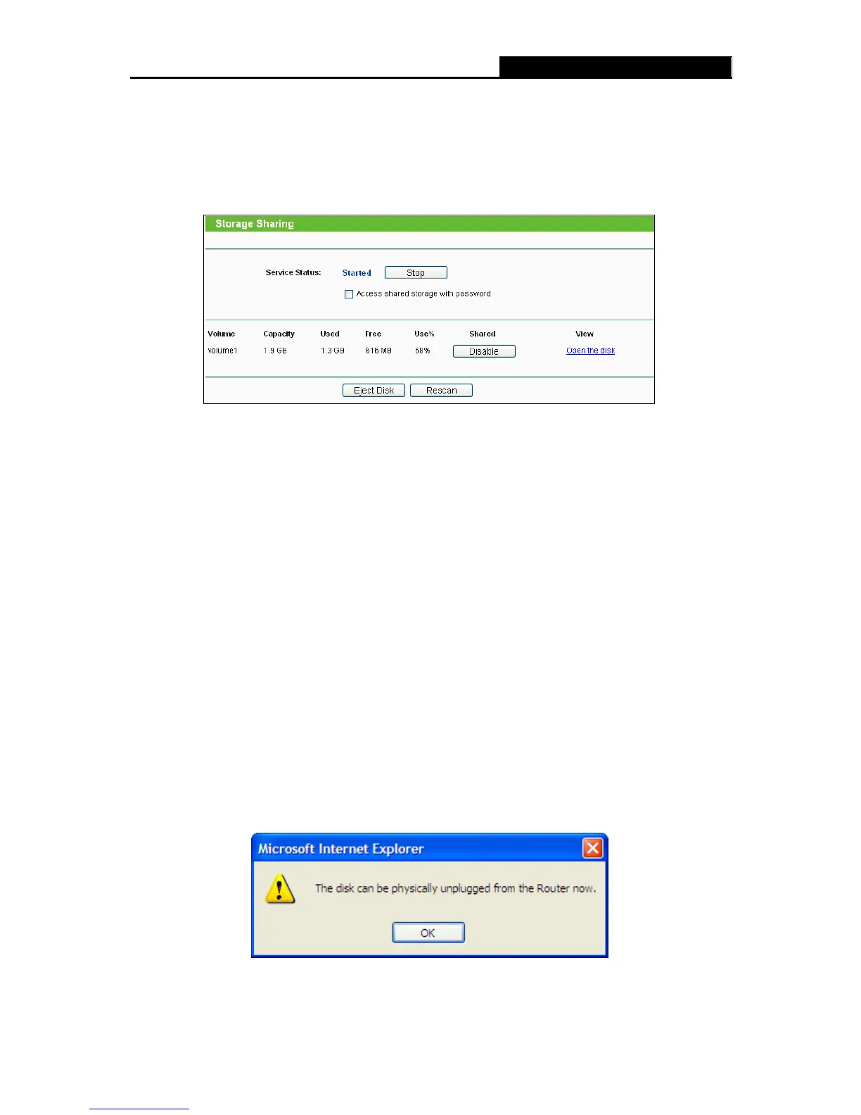to the Router and view volume and share properties such as share name, capacity, used space,