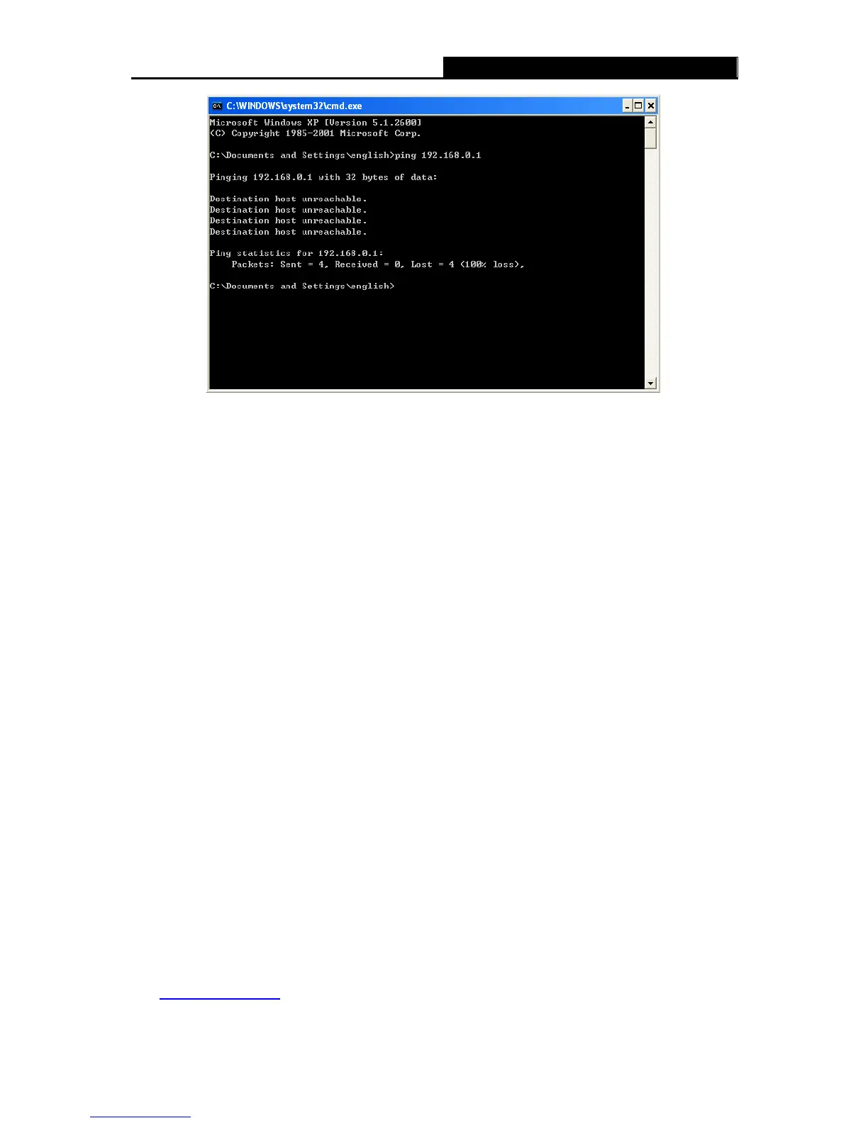 Figure 3-2 Failure result of Ping command