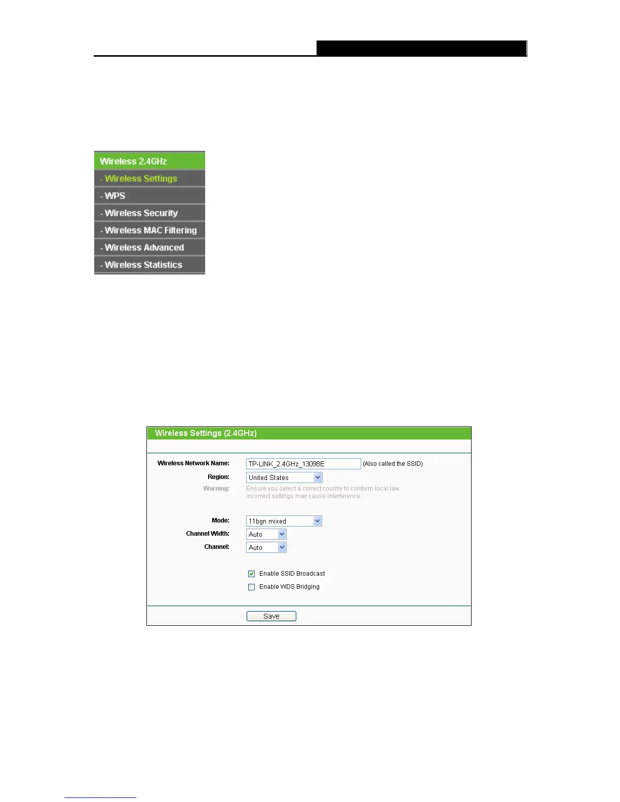 There are five submenus under the Wireless menu (shown in Figure 4-13): Wireless Settings,