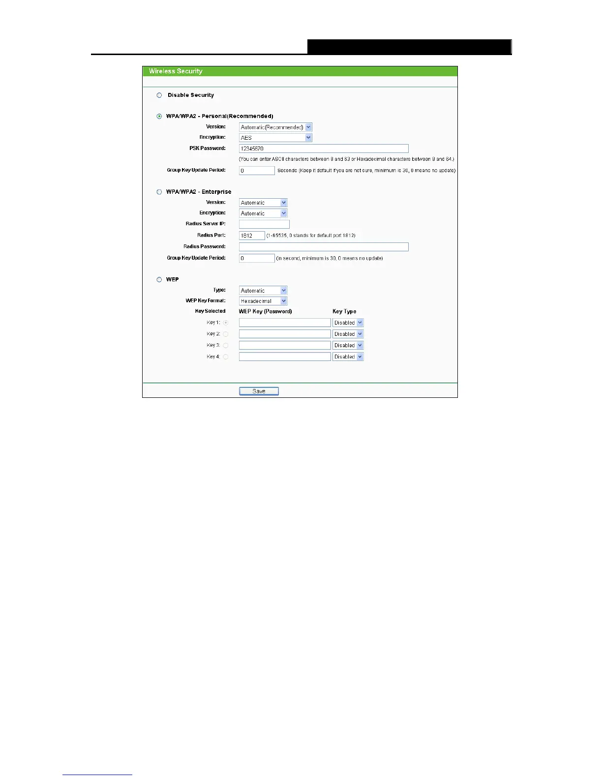 Disable Security - If you do not want to use wireless security, check this radio button. But it’s