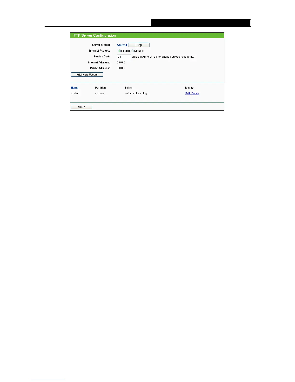 Internet Access - Select enable to allow access of the FTP server from the Internet.