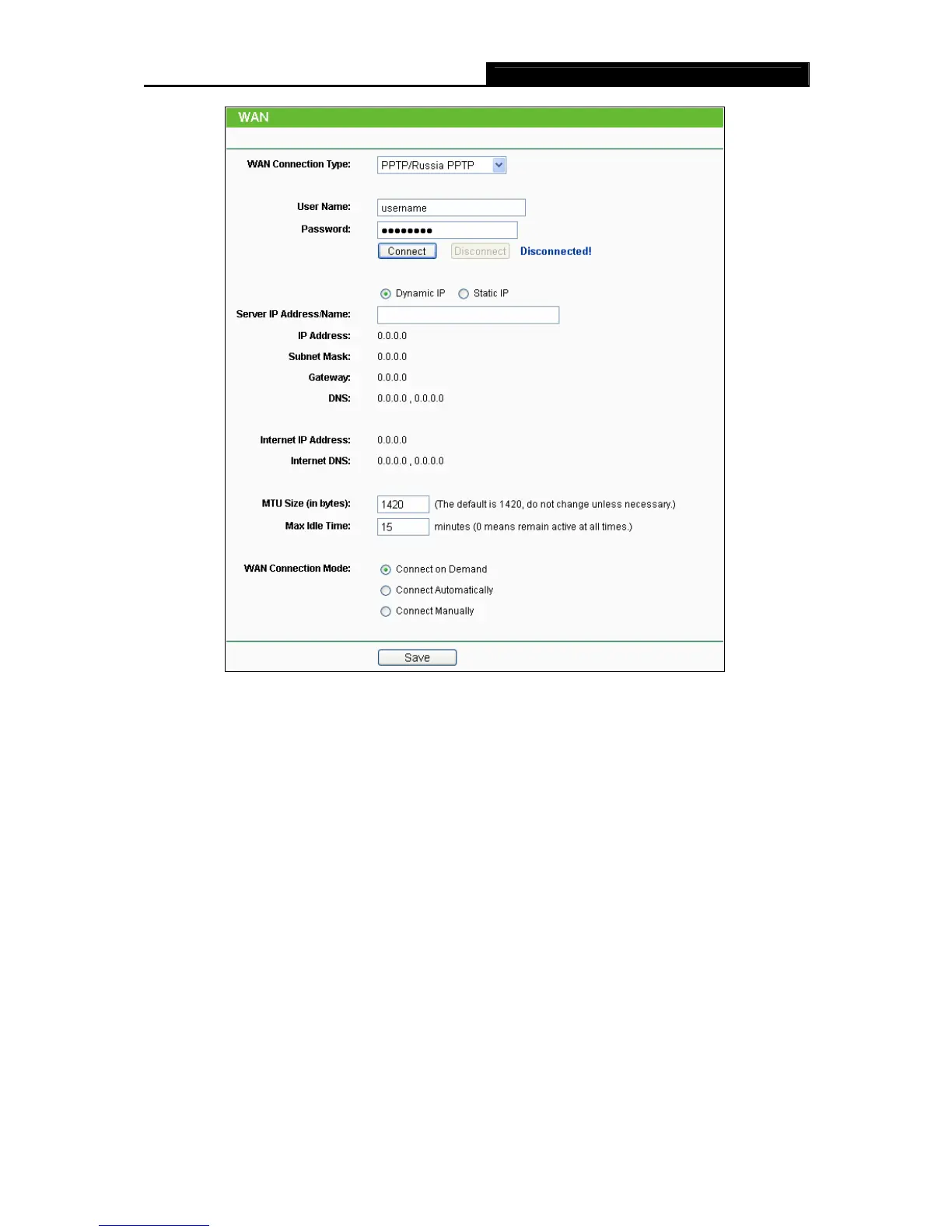 again. If you wish to activate Connect on Demand, check the radio button. If you want your