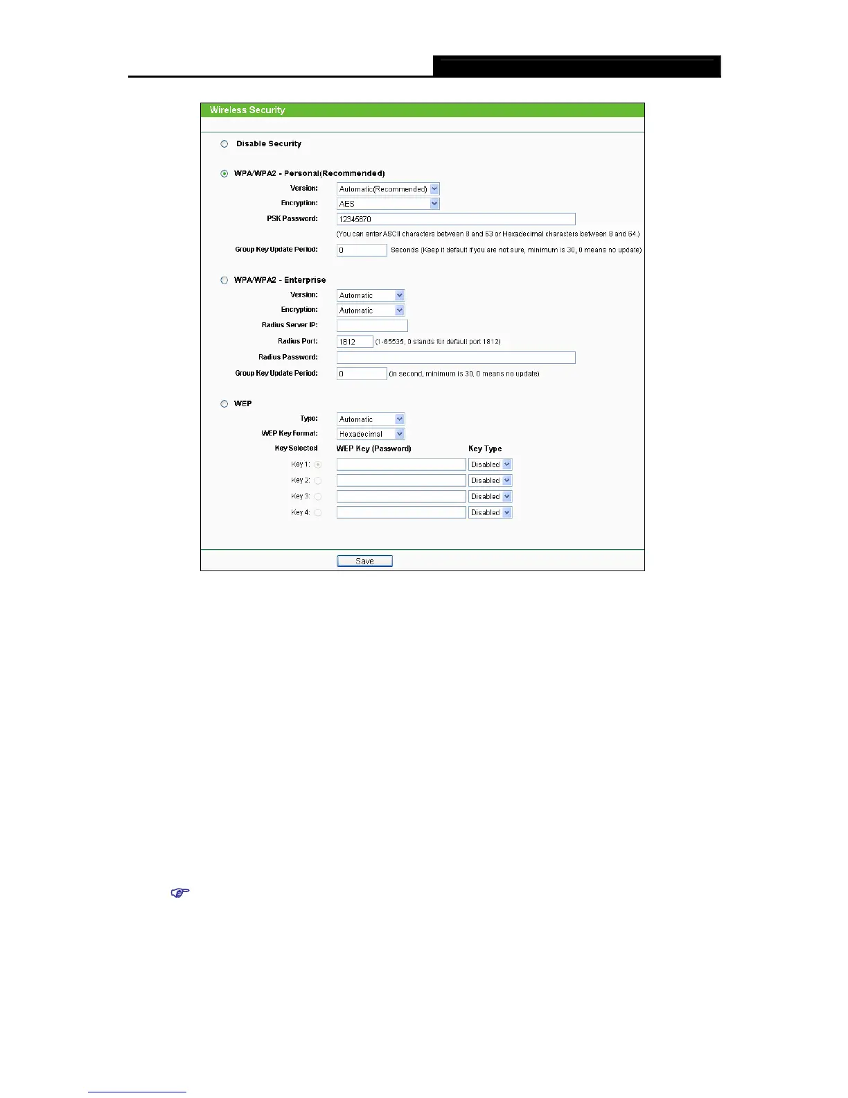 Ü Disable Security - If you do not want to use wireless security, check this radio button. But it’s