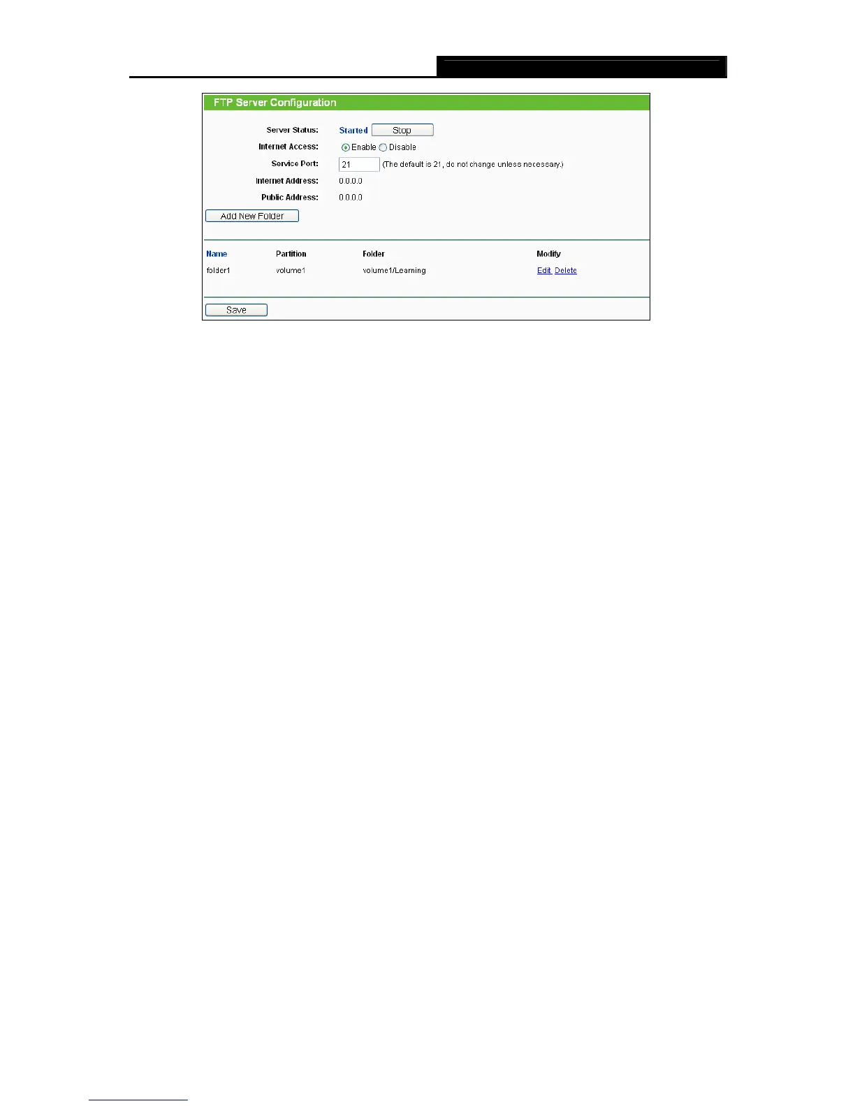 Ü Internet Access - Select enable to allow access of the FTP server from the Internet.