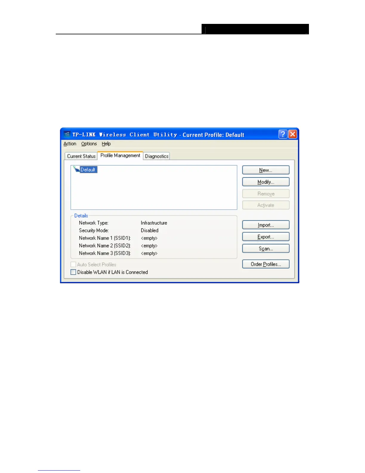 The Profile Management dialog box will display a screen similar to that shown in Figure 3-3.