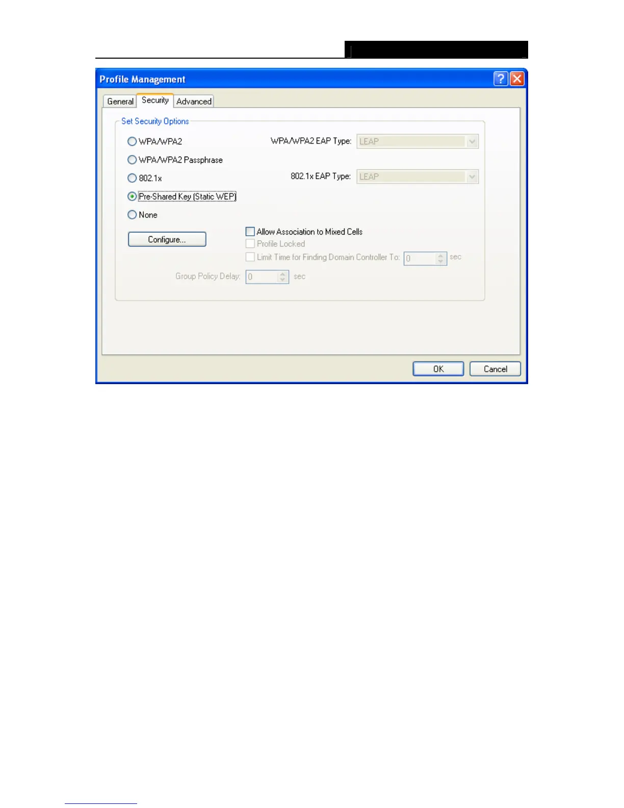 Security Tab to allow association. To complete WEP encryption configuration, you must select the