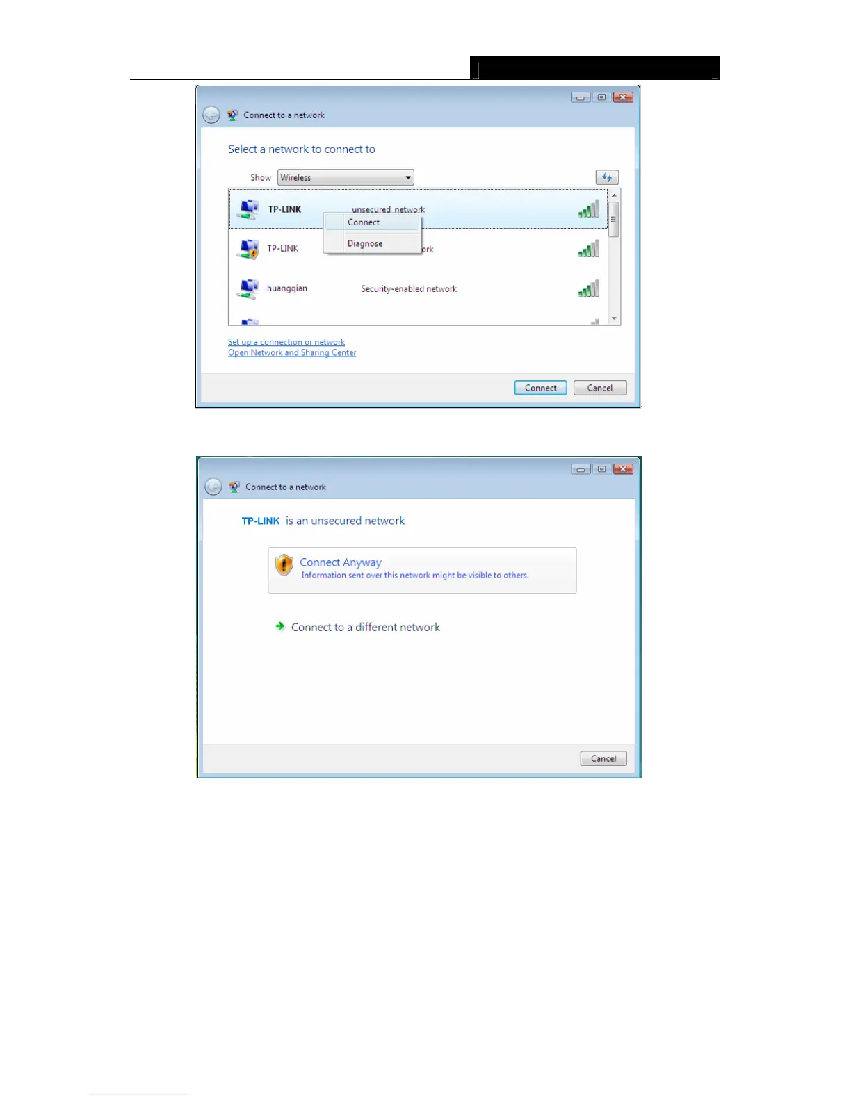 3. To continue, click Connect Anyway. Click the Cancel button to end the connection.