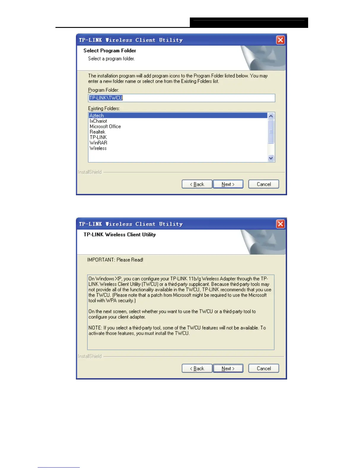 7. Choose TP-LINK Wireless Client Utility (TWCU) and Supplicant as a tool to configure the