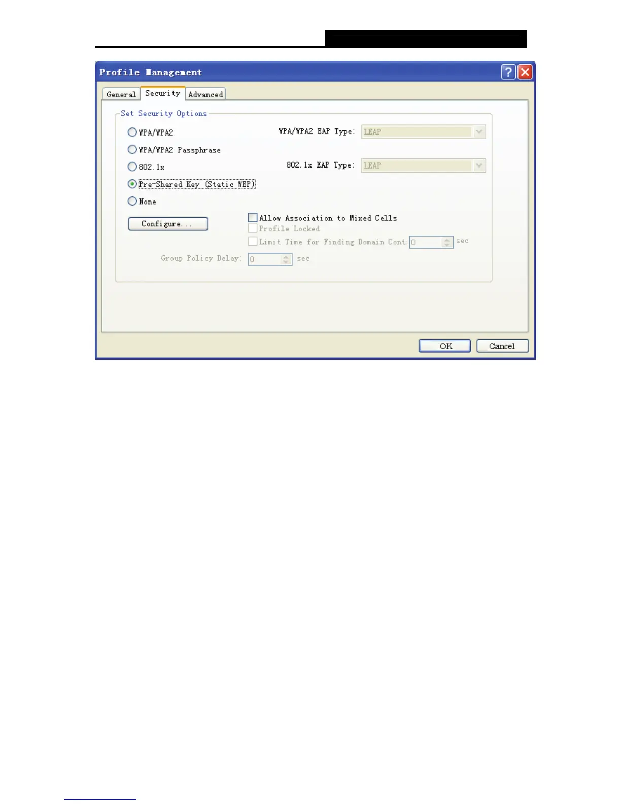 Authentication Mode as appropriate on the Advanced tab of this Profile Management dialog.
