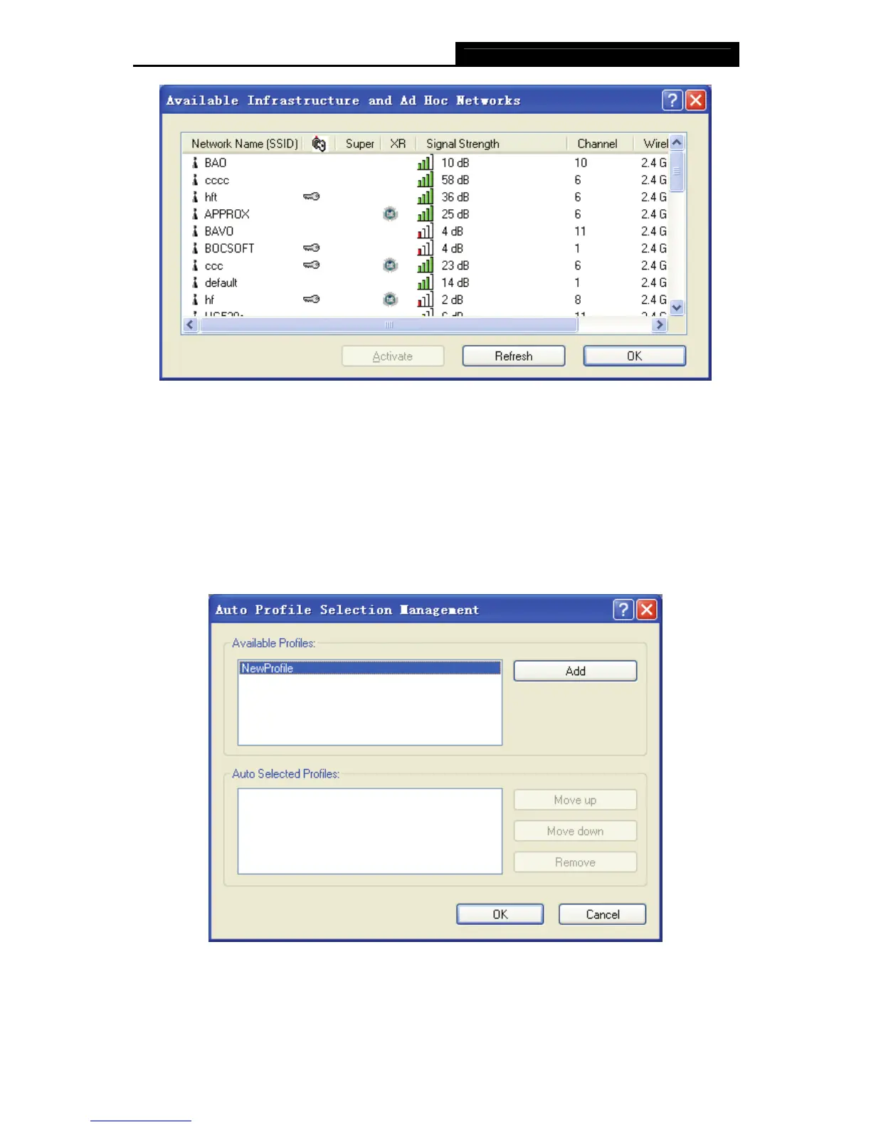 the list of profiles and use it to connect to the network. To add a new profile into the Auto Selected