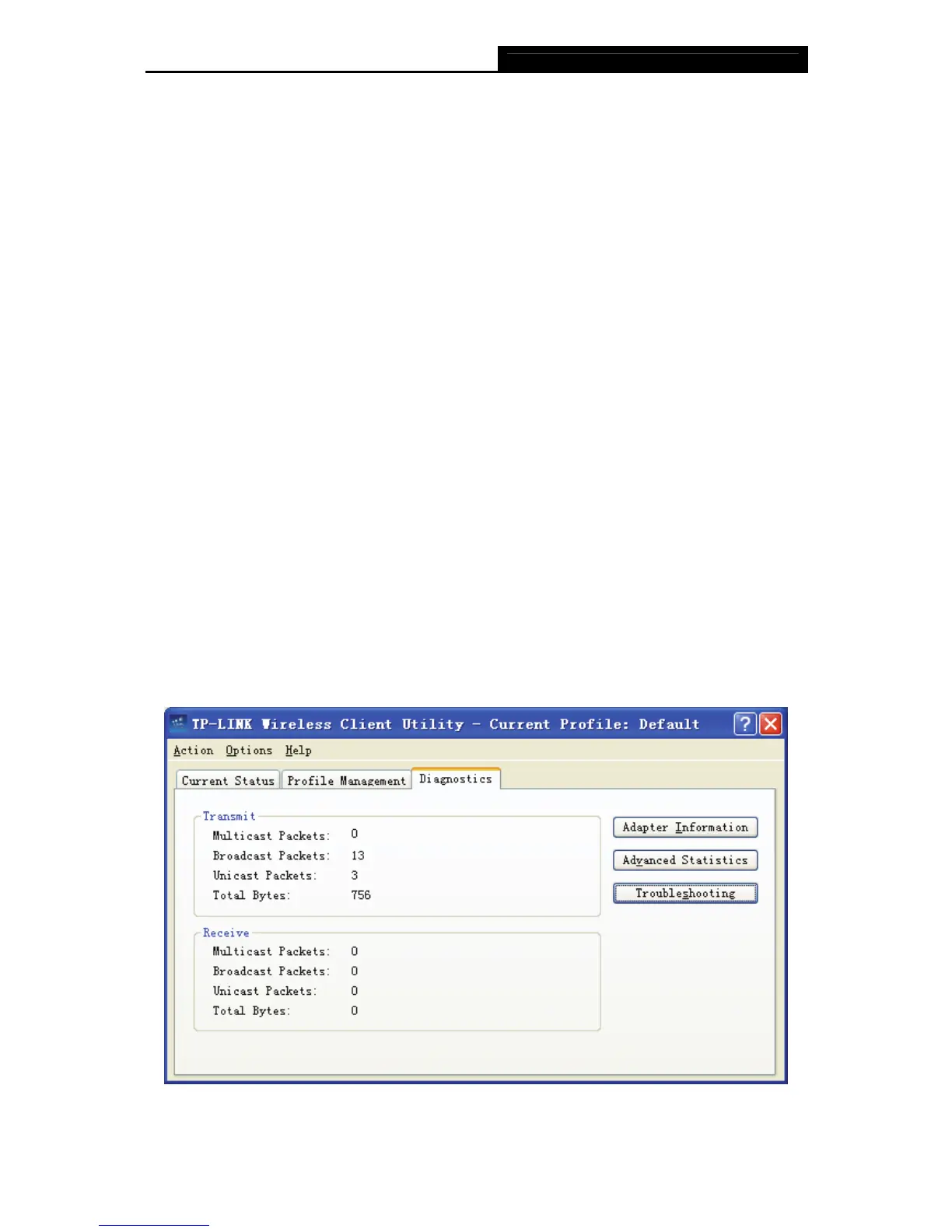 retrieve receiving and transmitting statistics. The Diagnostics tab does not require any