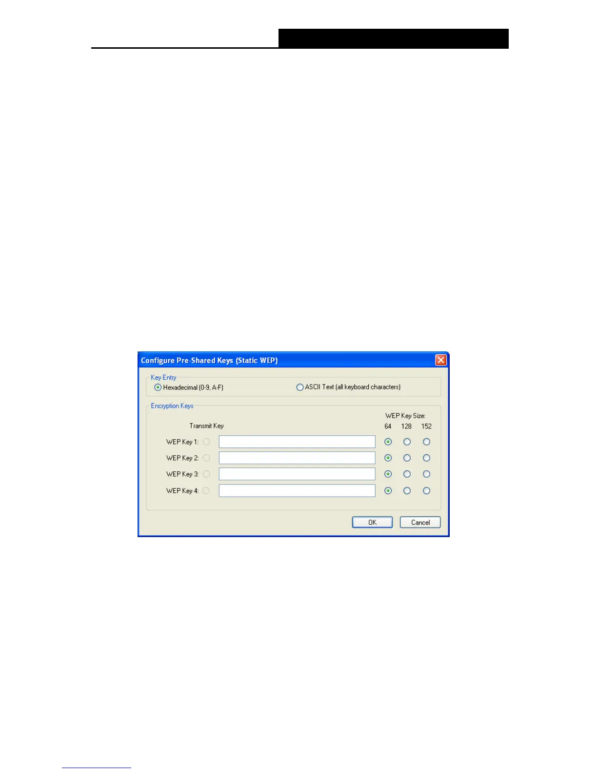 ¾ Pre-Shared Key (Static WEP): Enables the use of shared keys that are defined on both