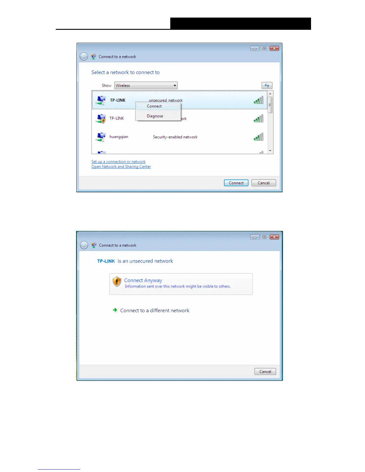 3. To continue, click Connect Anyway. Click the Cancel button to end the connection.