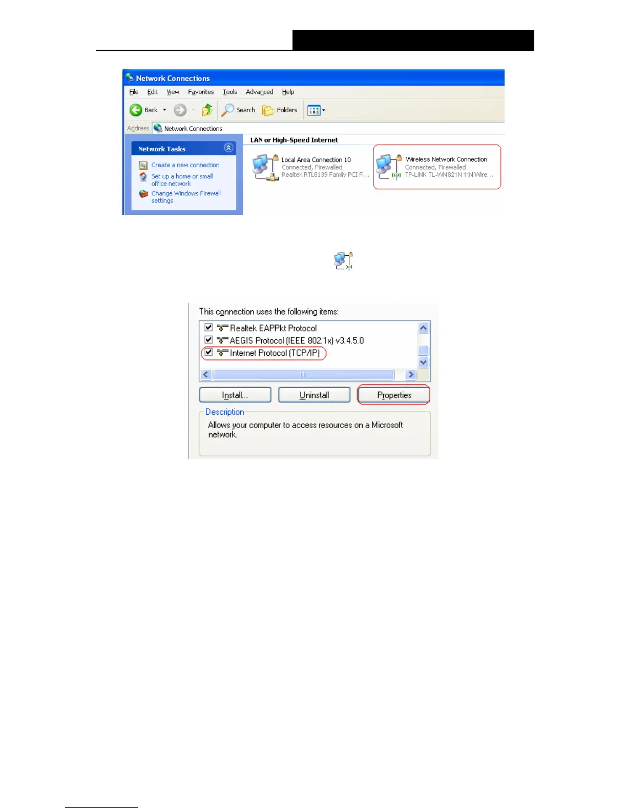 6. Right-click Wireless Network Connection icon , and select Properties. In the following