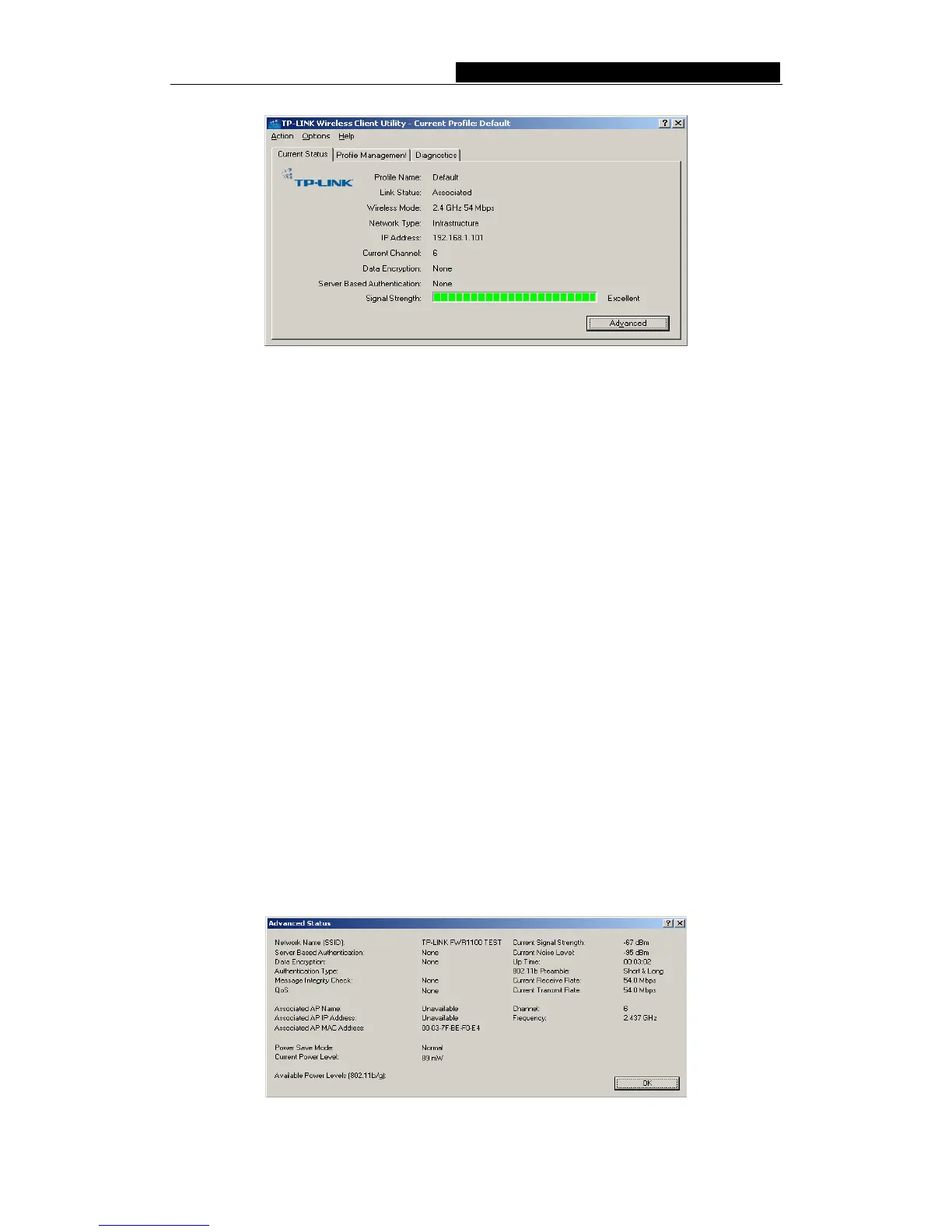 ¾ Link Status - Shows whether the station is associated to the wireless network.