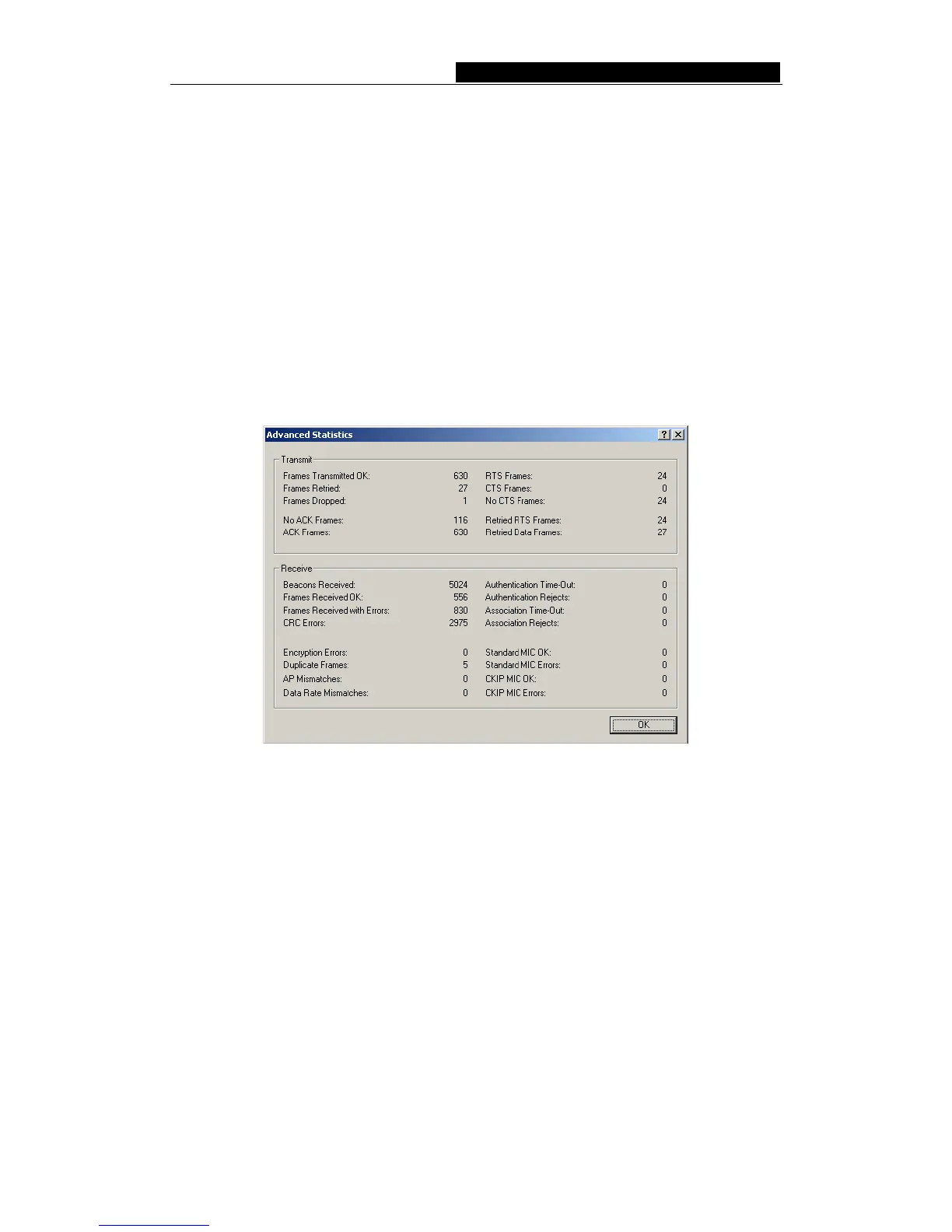 The Advanced Statistics show receiving and transmitting statistical information for the