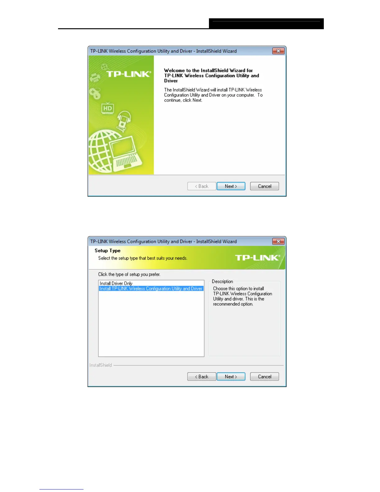 3. Choose a setup type. It is recommended to select Install TP-LINK Wireless