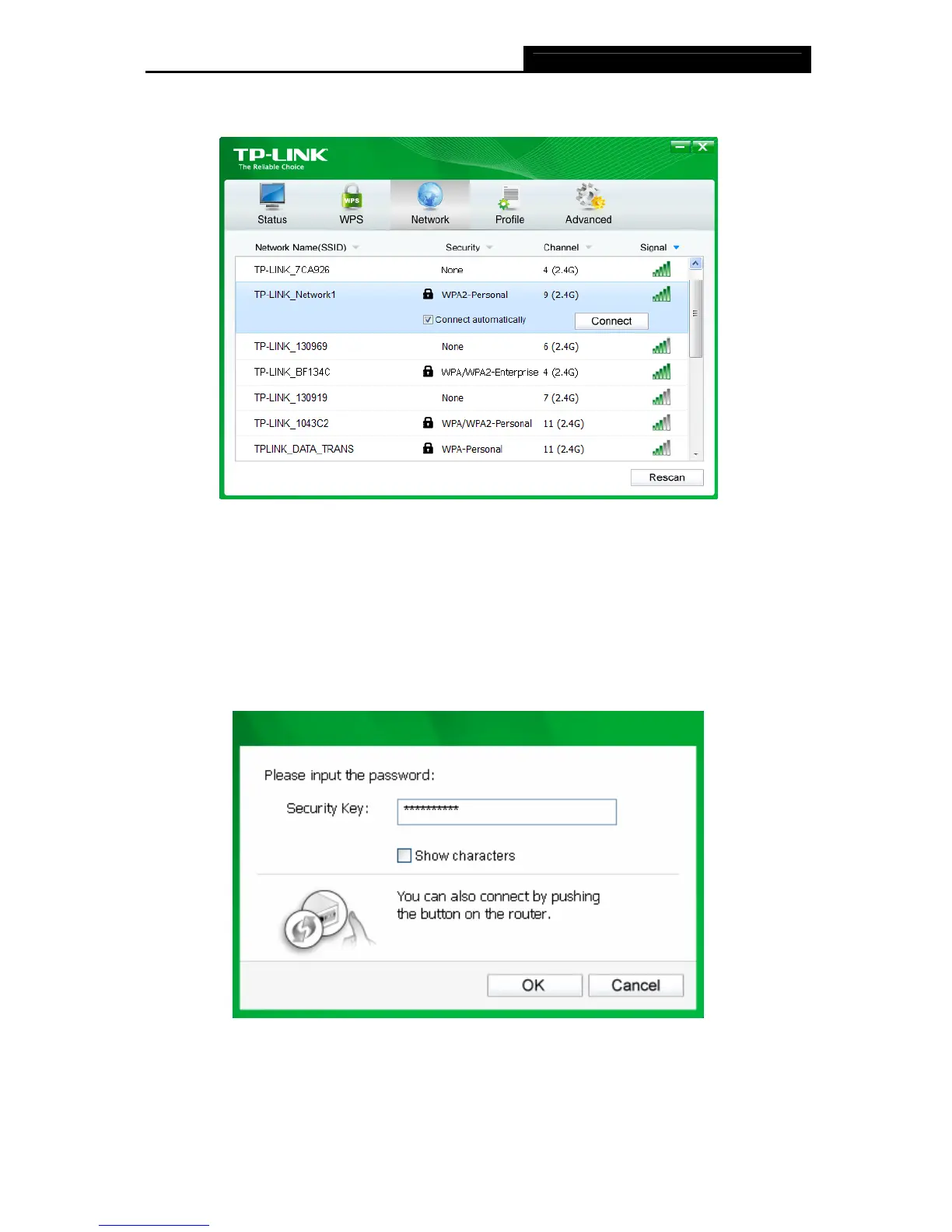 If you selected a wireless network of the security type WPA/WPA2-Personal, you will be