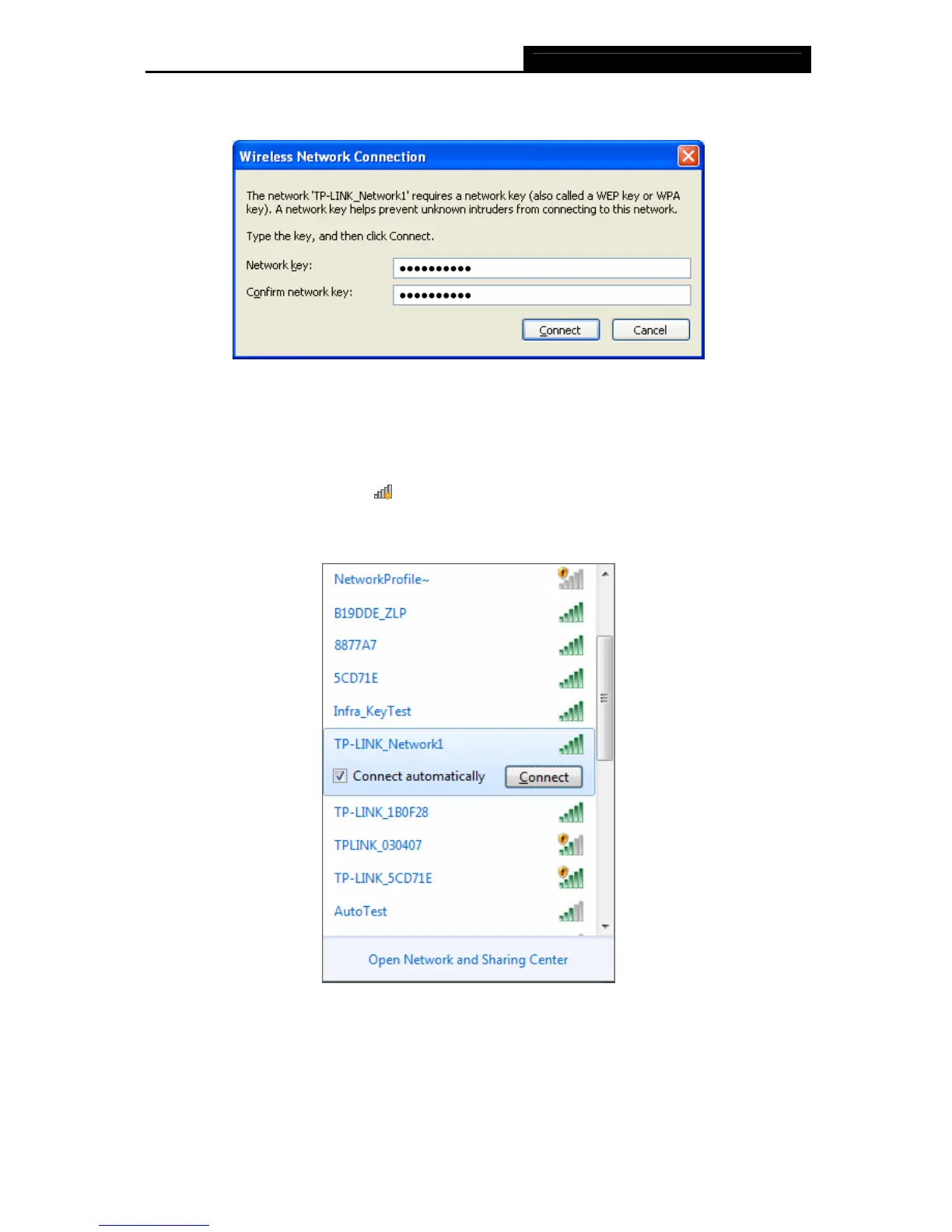2. If the network you would like to connect is security-enabled, enter the same security key or
