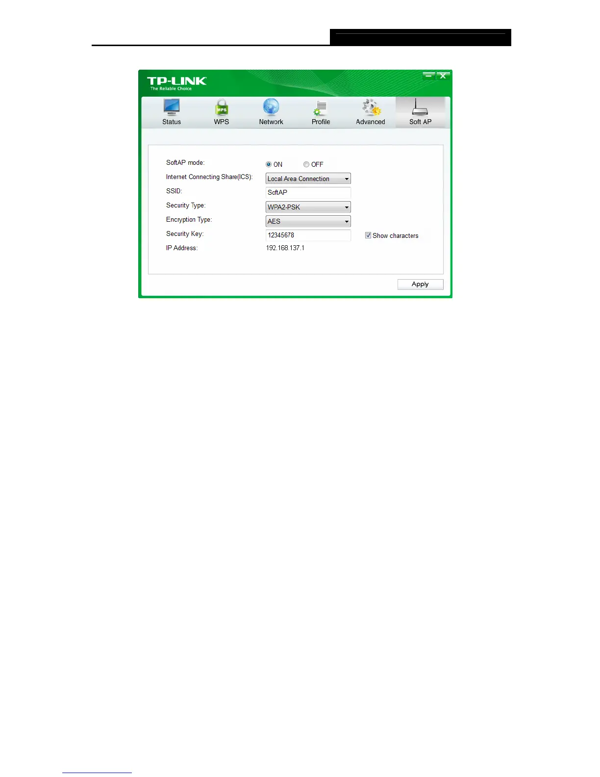 The Soft AP icon should then appear beside Advanced icon in the utility.