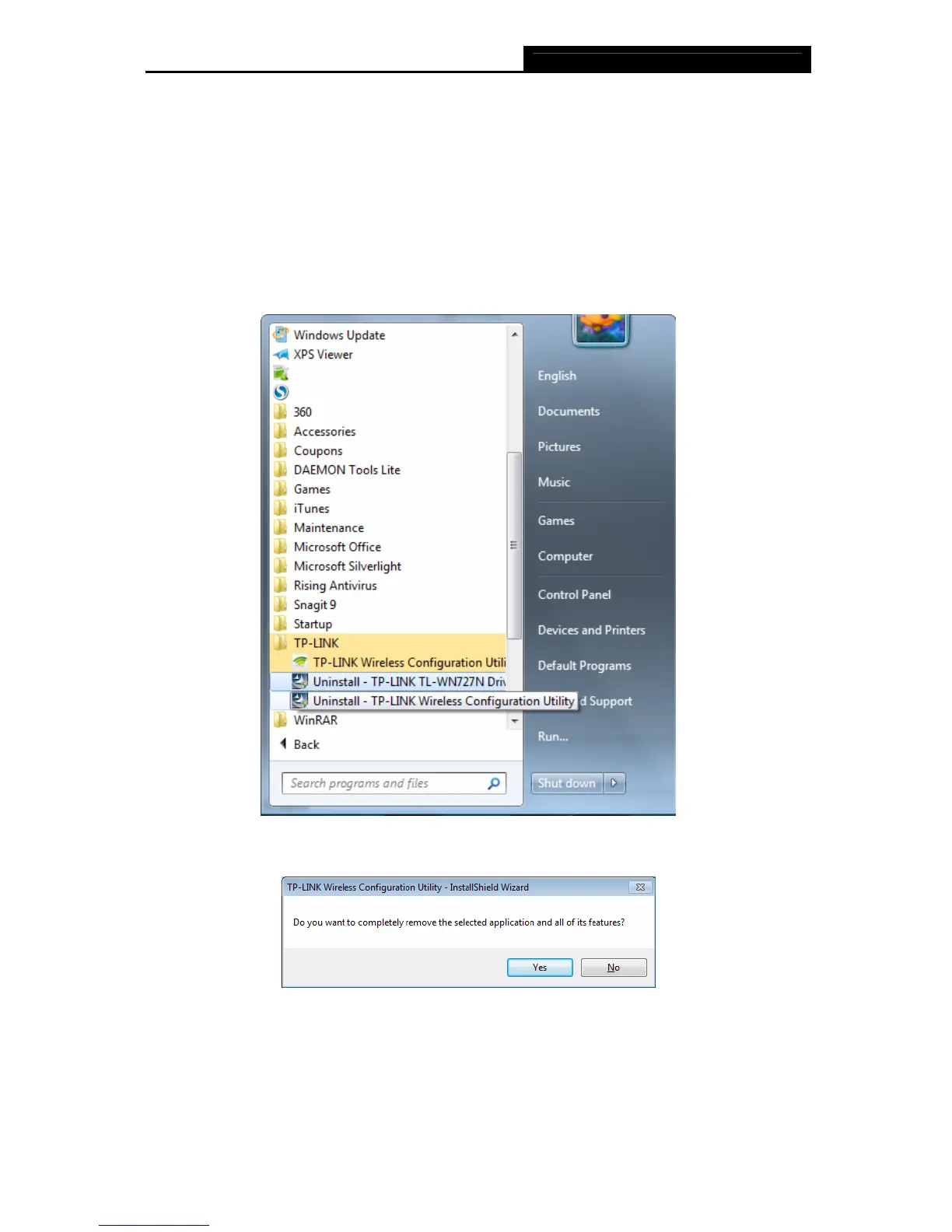 click Uninstall-TP-LINK Wireless Configuration Utility.