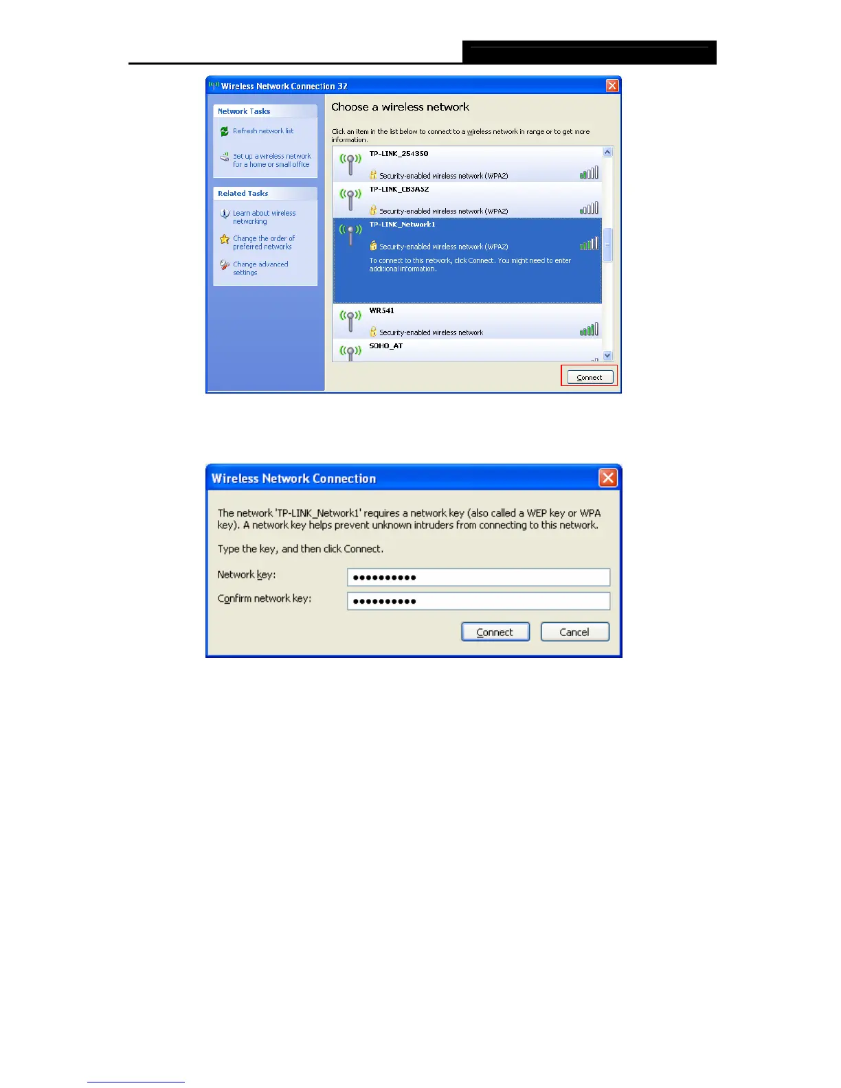 4. If the network is security-enabled, you will be prompted to enter the key as shown below. If