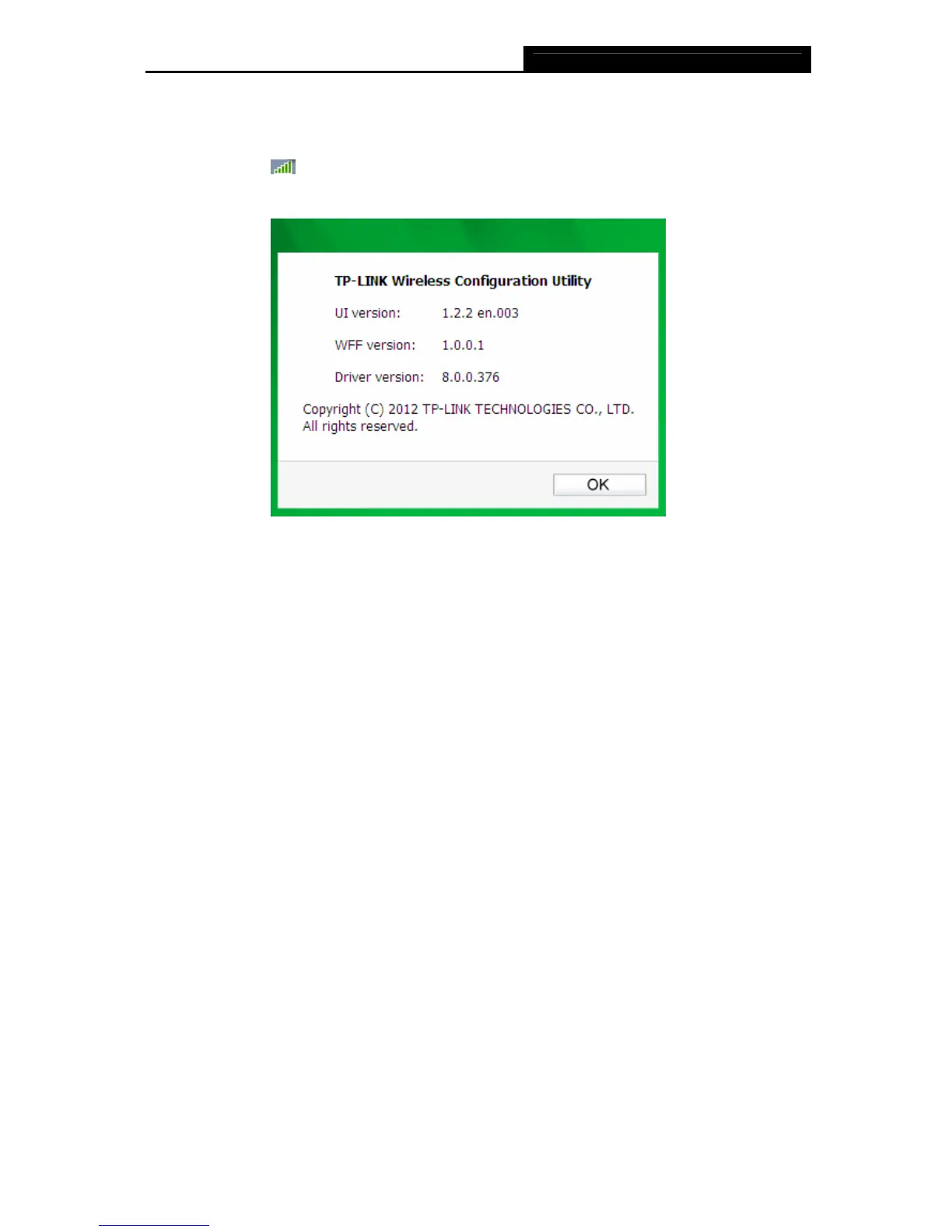 The About screen gives you information about the Driver and Utility versions of the adapter.