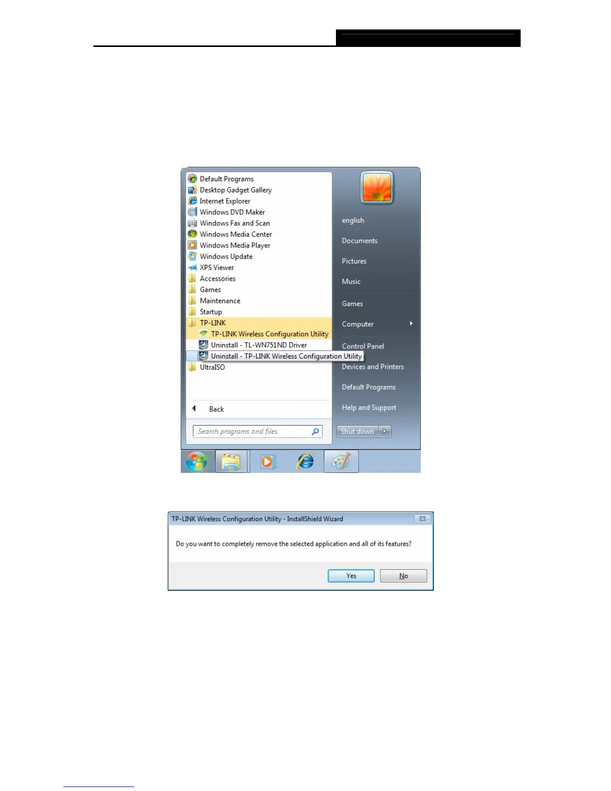 click Uninstall-TP-LINK Wireless Configuration Utility.
