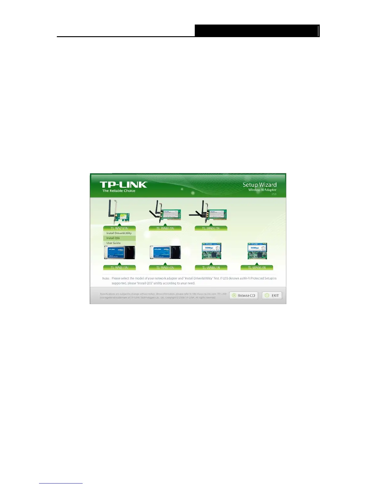 the Figure 4-2 will appear. To continue, select the TL-WN781N.There will be a menu including: