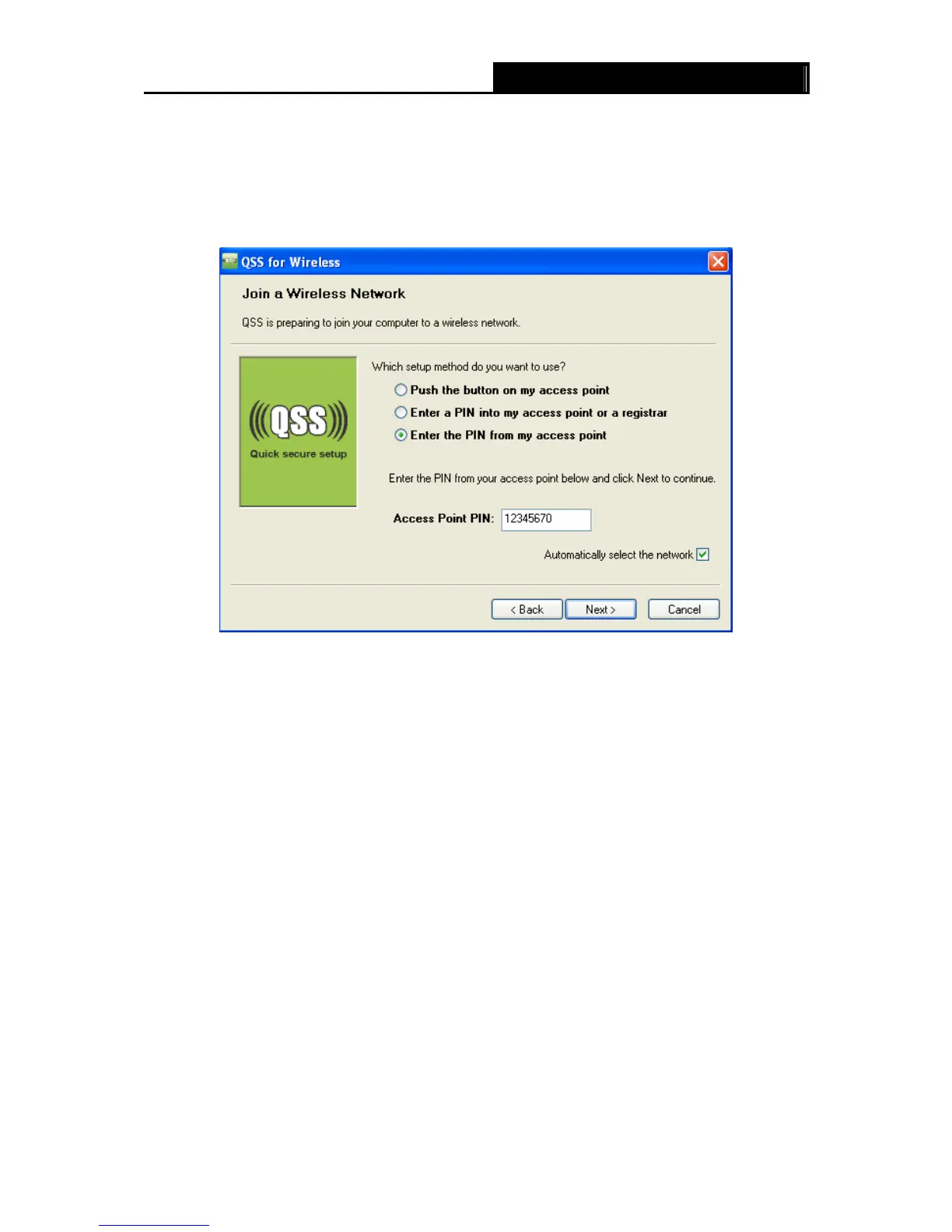 2. When Figure 4-6 appears, the QSS configuration is complete.