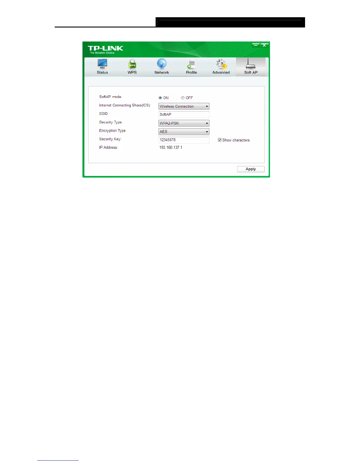 The Soft AP icon then will appear beside Advanced icon in the utility.