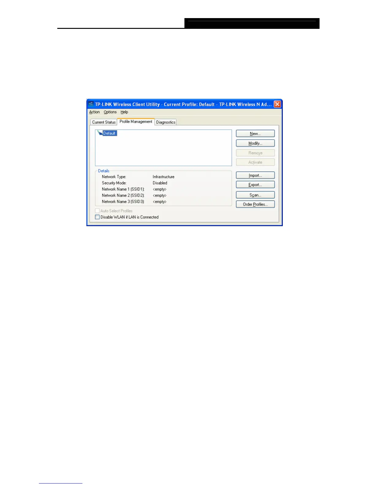 To add a new configuration profile, click New on the Profile Management tab. To modify a