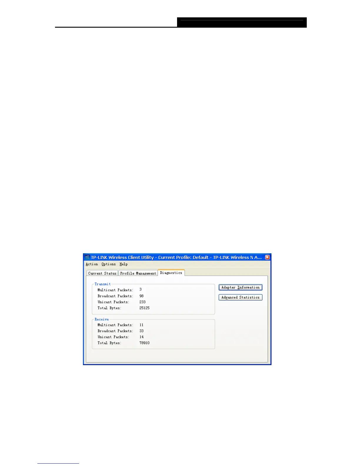 retrieve receiving and transmitting statistics. The Diagnostics tab does not require any