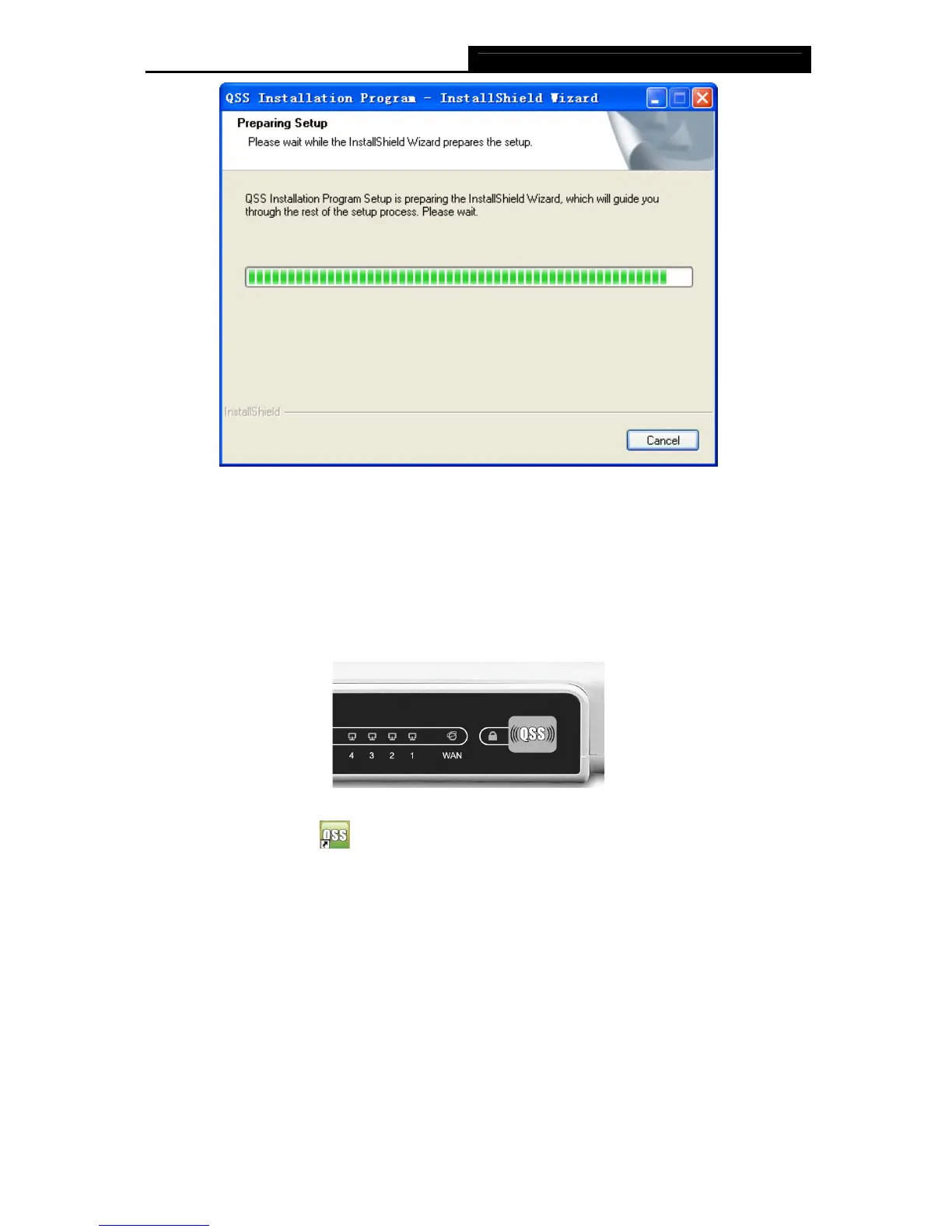 1. Firstly, Press the QSS button directly on the front panel of the Router shown in Figure 4-3.