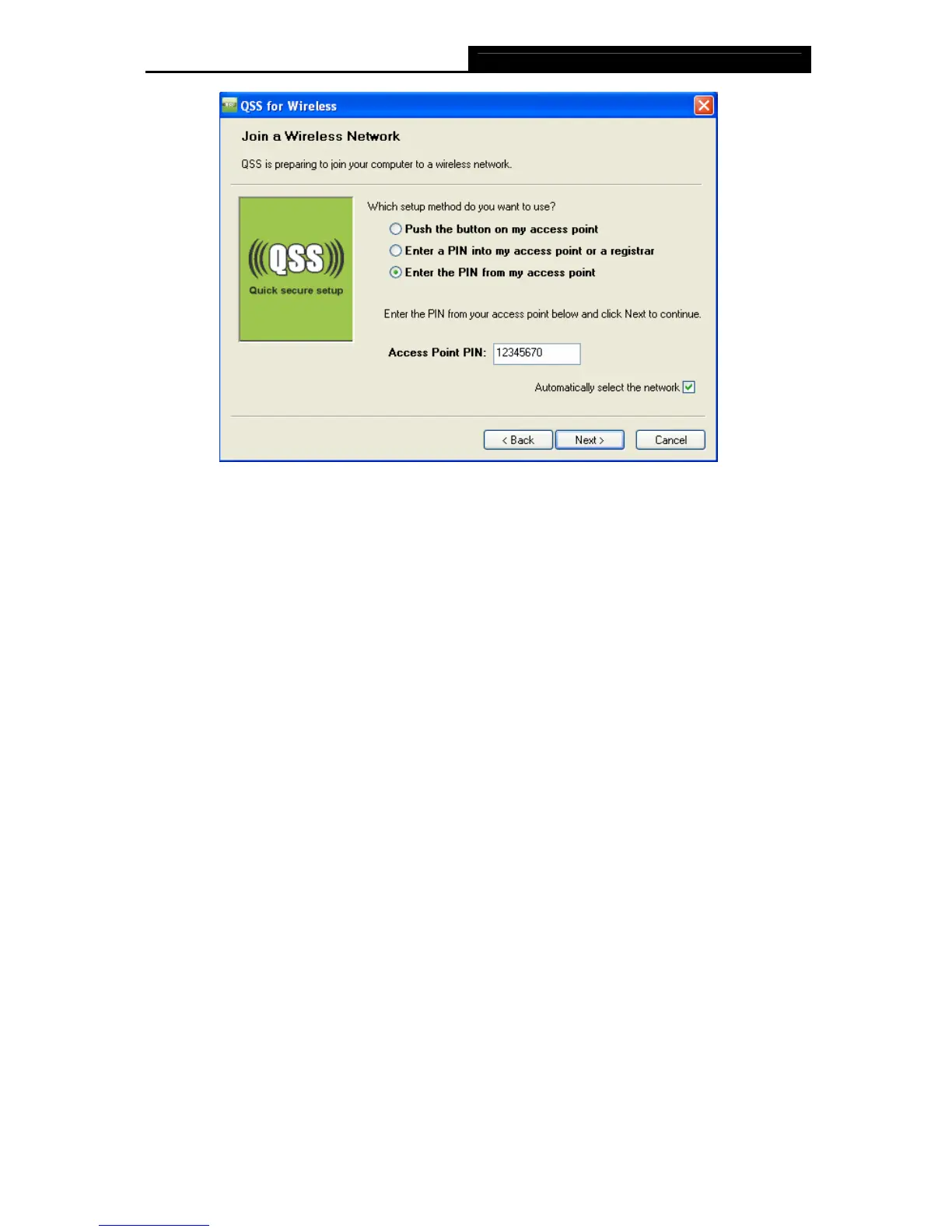 2. When Figure 4-6 appears, the QSS configuration is complete.