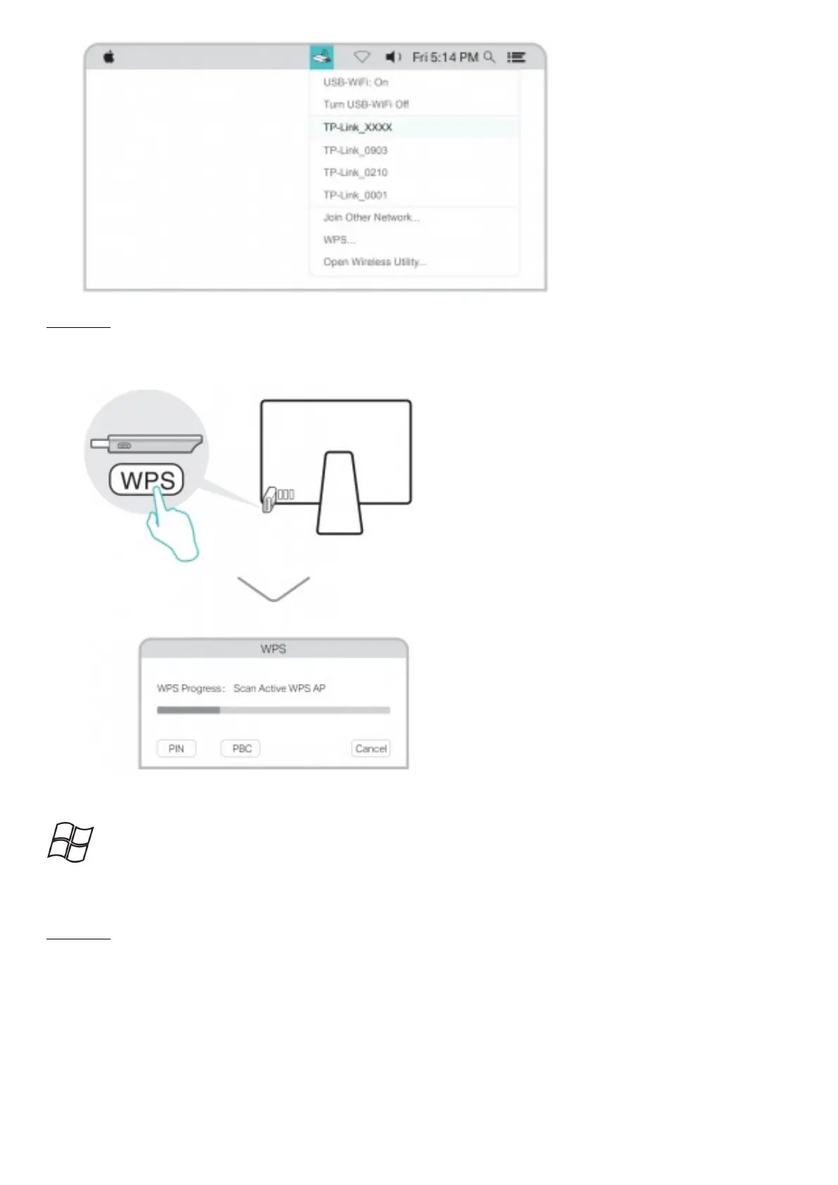 2. Within 2 minutes, press and hold the WPS button on the adapter until the WPS progress window appears.