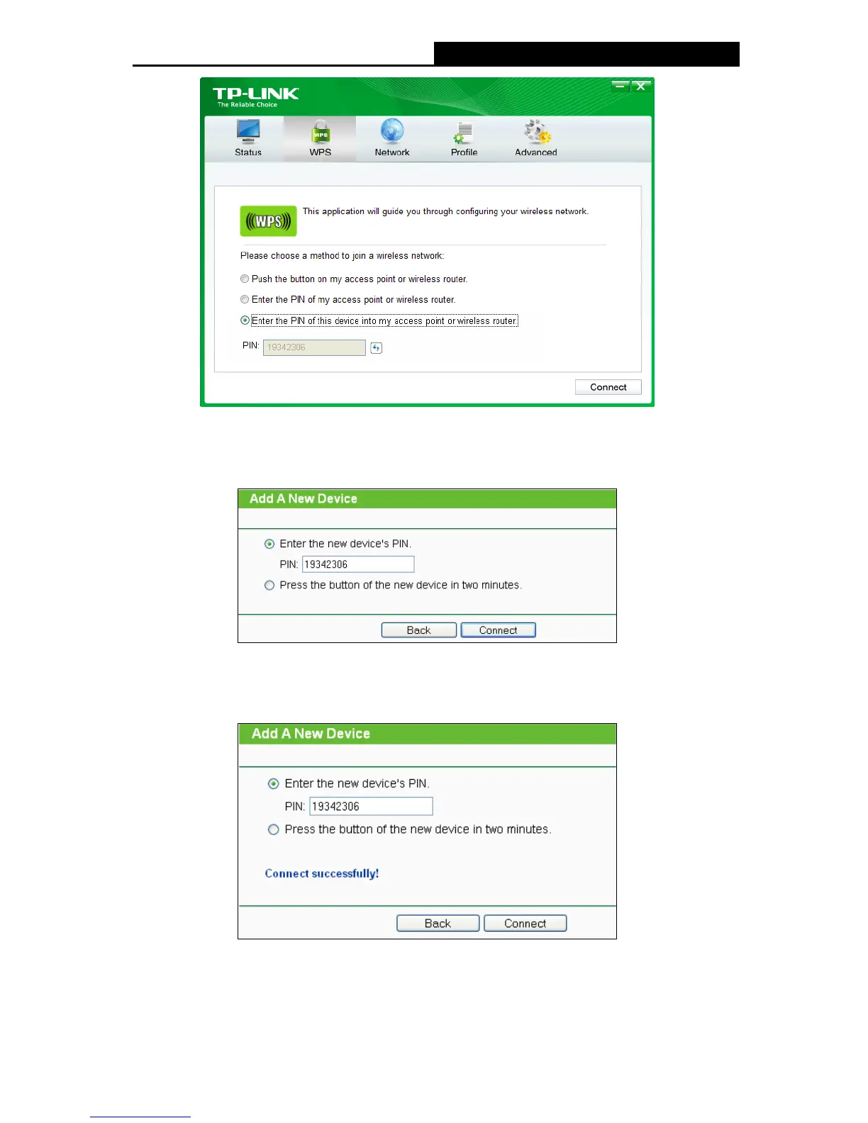 3. When Connect successfully appears on the screen, the WPS configuration is complete.