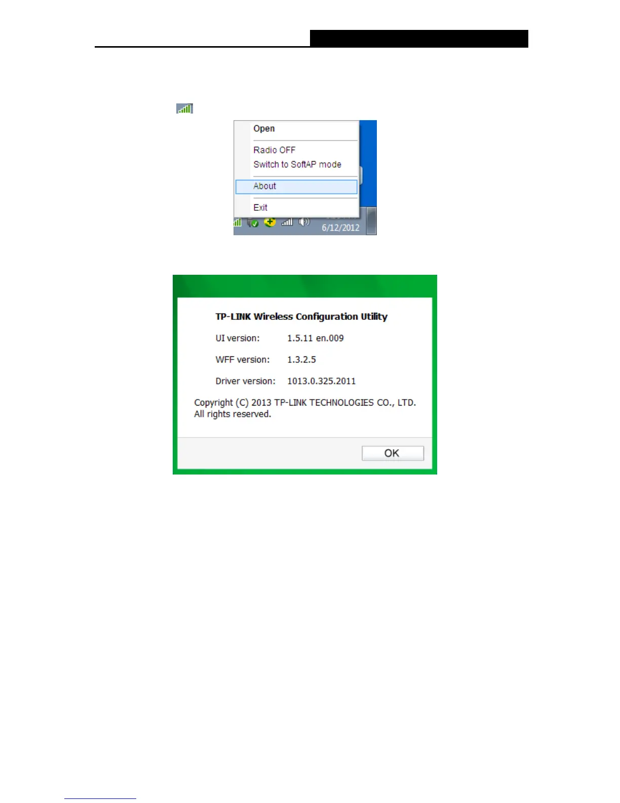 The About screen gives you information about the Driver and Utility versions of the adapter.