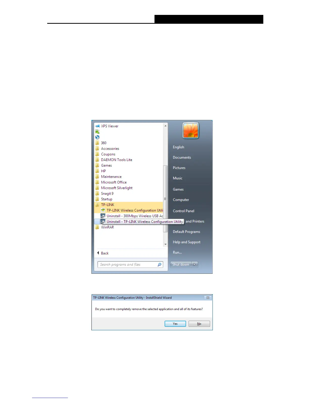 click Uninstall-TP-LINK Wireless Configuration Utility.