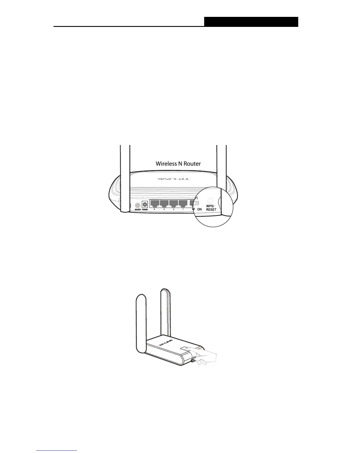 1. Press the WPS/RESET button for 2~3 seconds on the back panel of the router. Here takes