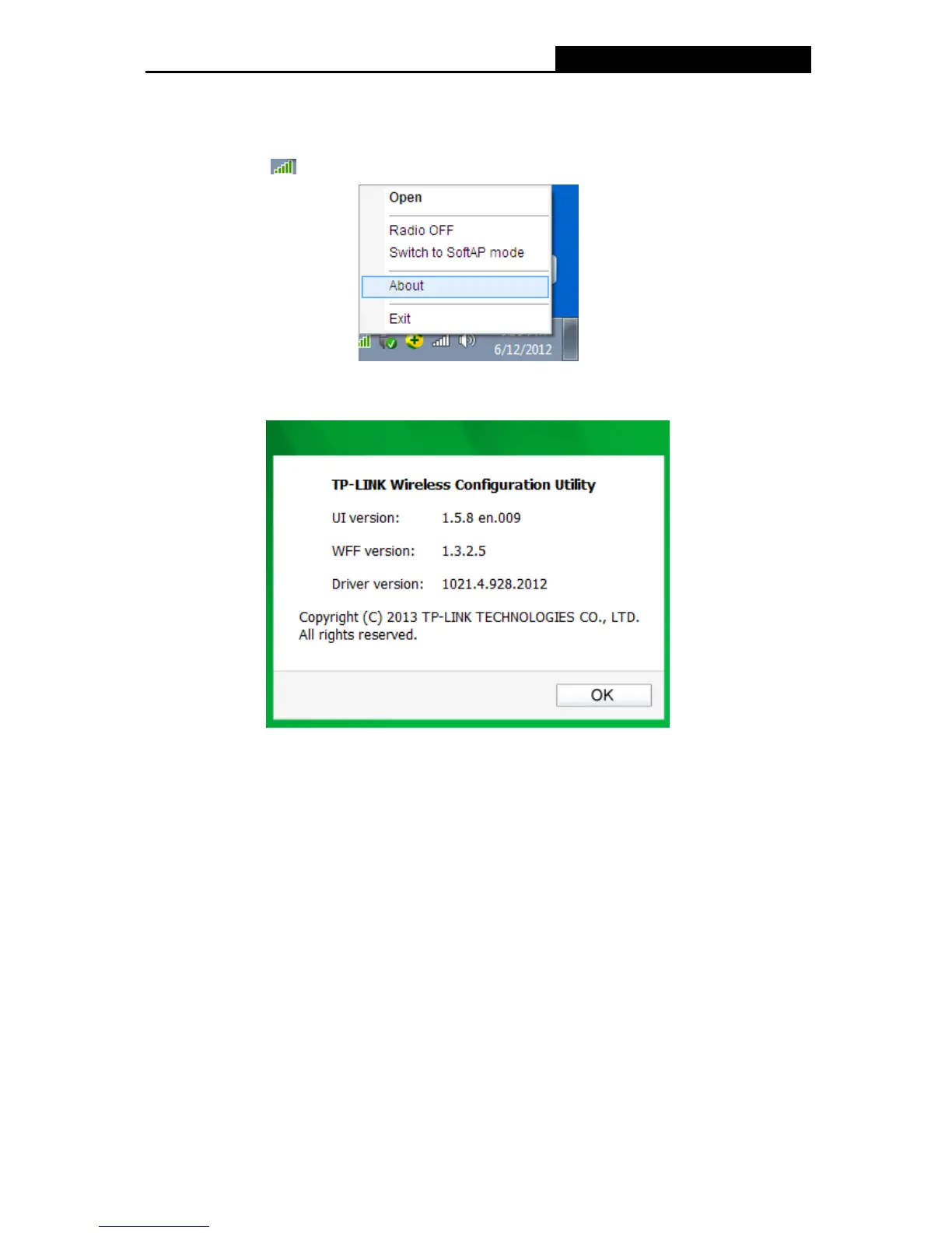 The About screen gives you information about the Driver and Utility versions of the adapter.