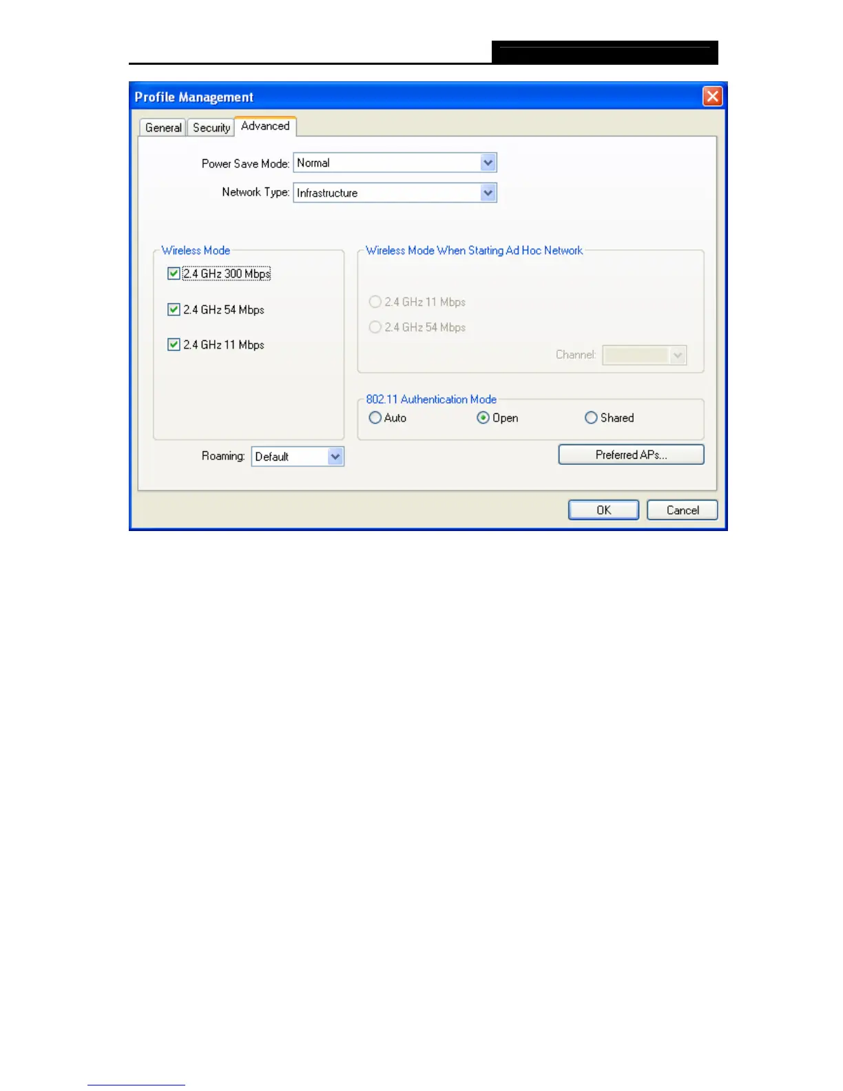 ¾ Wireless Mode: Specifies 2.4 GHz 300 Mbps, 2.4 GHz 54 Mbps or 2.4 GHz 11 Mbps