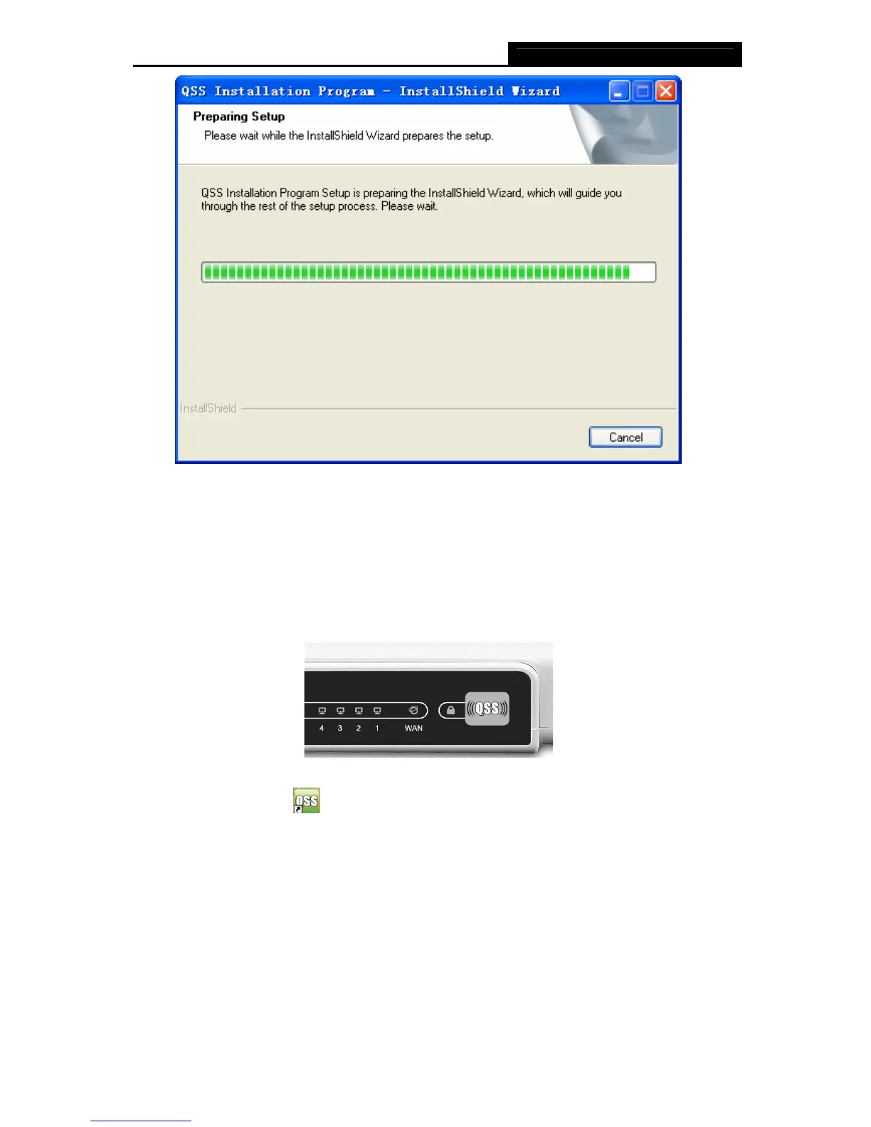 1. Firstly, Press the QSS button directly on the front panel of the Router shown in Figure 4-3.