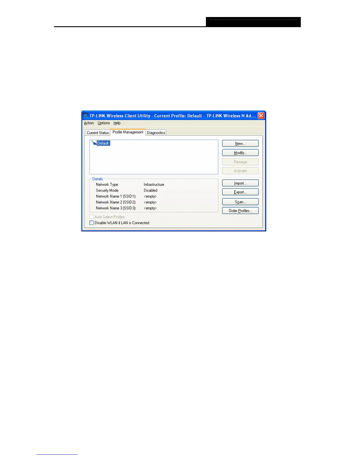 To add a new configuration profile, click New on the Profile Management tab. To modify a