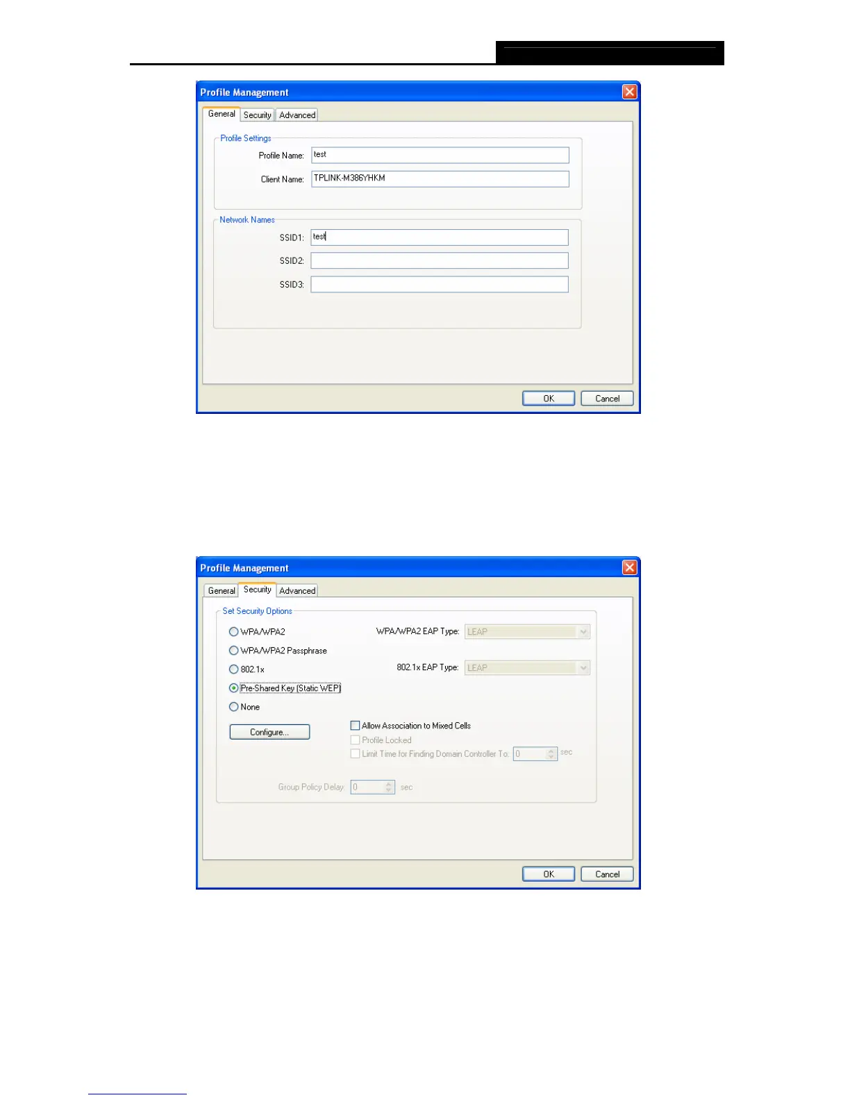 profile. To define the security mode, select the radio button of the desired security mode as