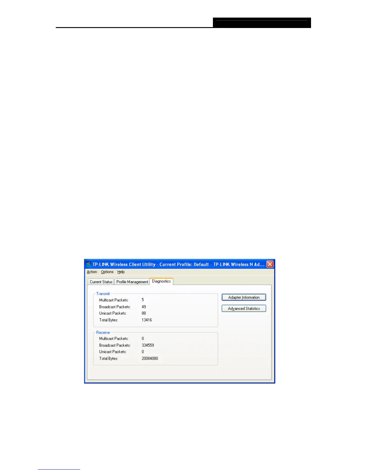 retrieve receiving and transmitting statistics. The Diagnostics tab does not require any