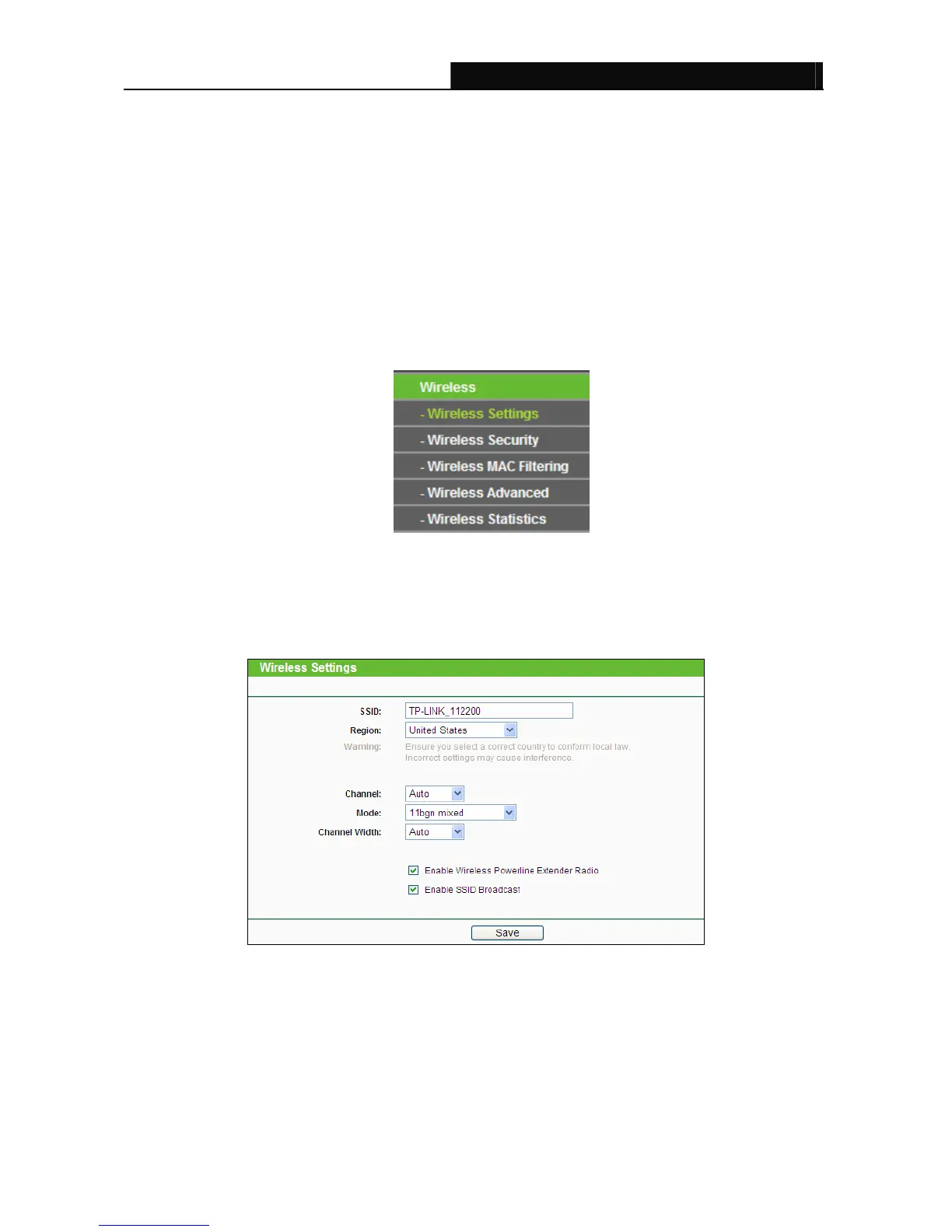 ireless > Wireless Settings will enable you to configure the basic settings for your wireless